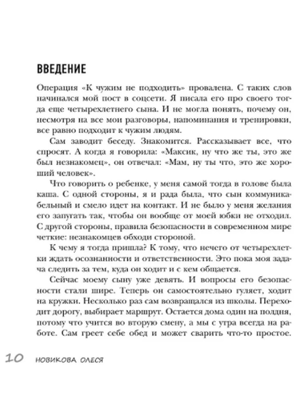 Эта книга — настоящий путеводитель для родителей, стремящихся вырастить уверенных и счастливых детей. Автор книги, Олеся Новикова, педагог, психолог и автор масштабного телепроекта «Мамина школа», предлагает детально разобрать тему детской безопасности, начиная с эмоционального благополучия в семье и предотвращения угроз психологическому здоровью ребенка, переходя к темам интимной безопасности и правилам поведения в школе, на улице, дома и в интернете.