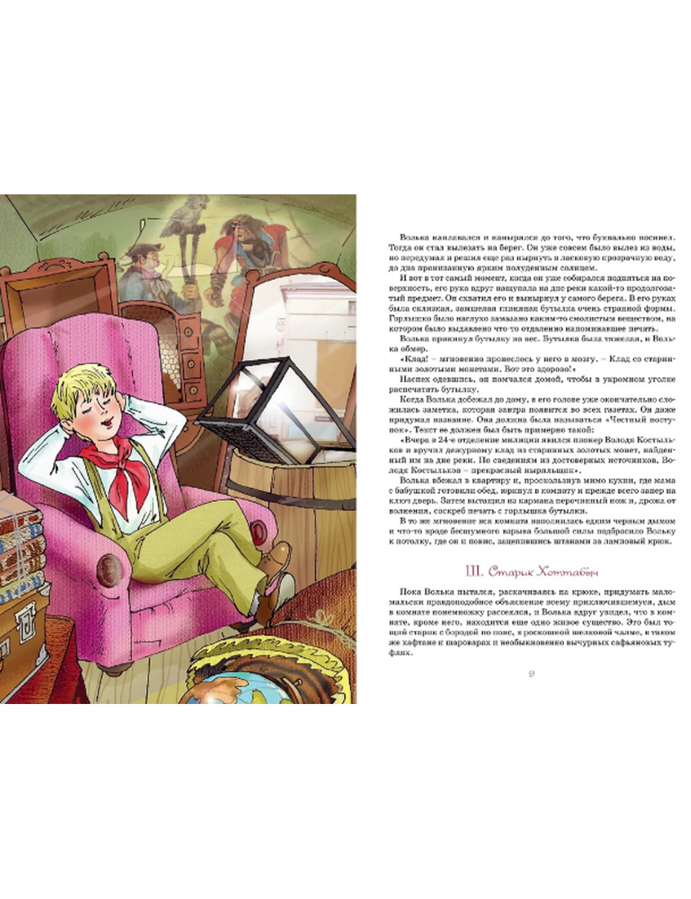 Повесть-сказка «Старик Хоттабыч» вышла в 1938 году и с тех пор стала одной из самых любимых детских книг. Уже несколько поколений мальчишек и девчонок нашей страны с удовольствием читают о приключениях джинна, попавшего из времен царя Соломона в советскую страну конца 1930-х годов. И не важно, что книга была написана почти сто лет назад, ведь история о том, как пионер Волька Костыльков выловил в реке старинный кувшин и выпустил из него джинна, – по-настоящему добрая, веселая и увлекательная. Она переведена на многие языки, в том числе на английский, немецкий, чешский, болгарский, китайский… Ее автор Лазарь Иосифович Гинзбург, писавший под псевдонимом Л. Лагин, сочинил еще несколько книг, но благодаря именно «Старику Хоттабычу» его имя навсегда останется в истории детской литературы.