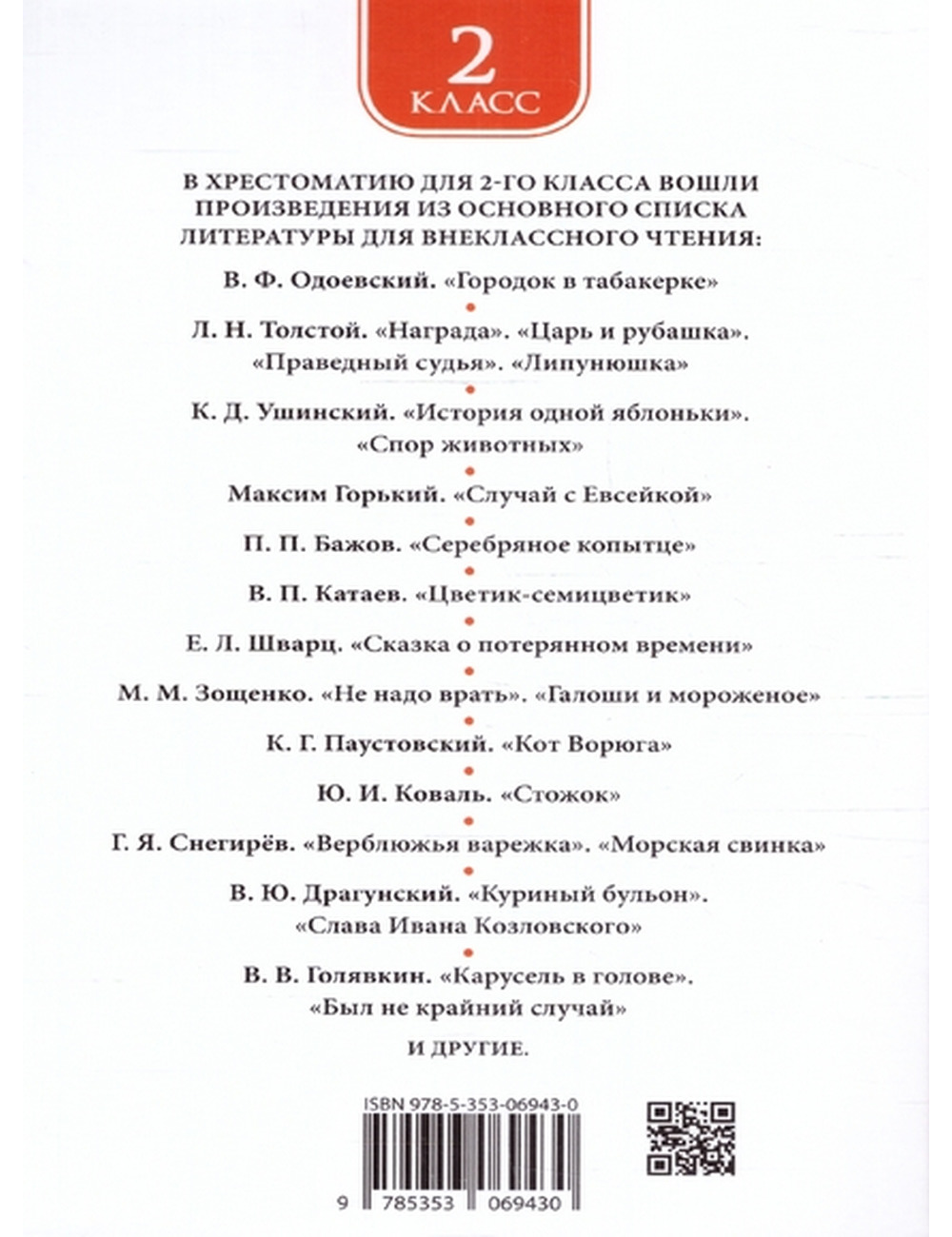 В сборники вошли рекомендованные для прочтения во 2 классе сказки русских и зарубежных авторов и лучшие детские произведения классиков русской литературы. Сборник состоит из разделов: "Устное народное творчество", "Русские поэты - детям", "Российские писатели - детям", "Зарубежные писатели- детям".