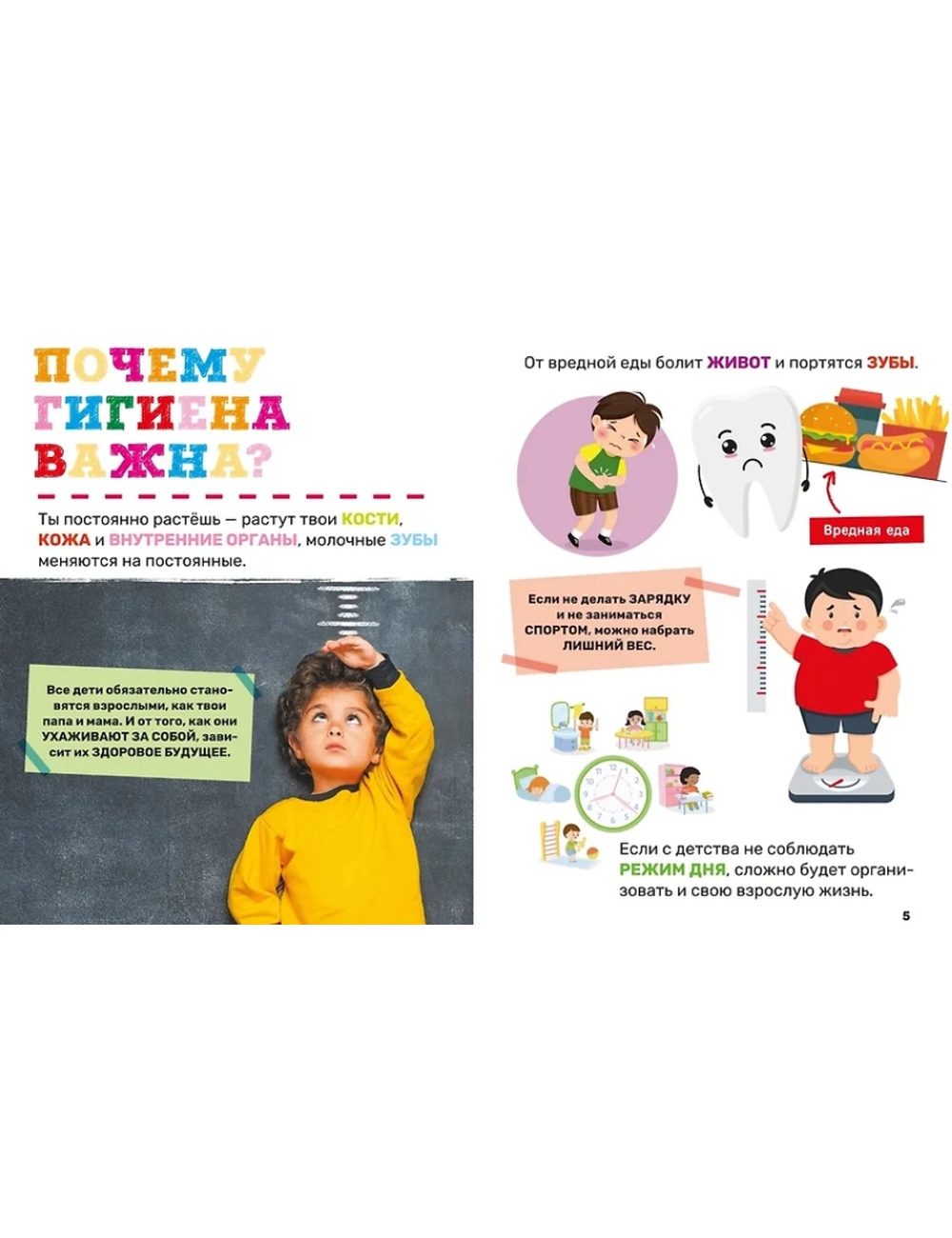 Красочно иллюстрированная энциклопедия познакомит ребенка с понятием гигиены и распорядком дня, подскажет, как заботиться о здоровье и как оказать первую помощь. Книга содержит познавательные факты об окружающем мире, множество реалистичных фотографий и увлекательных заданий на внимание и логику. «Гигиена. Первая энциклопедия малыша» поможет ребенку 3-5-ти лет развить мышление и кругозор, а также объяснит: • Что такое «правильное питание» и как делать зарядку • Как заботиться о глазах, коже и волосах