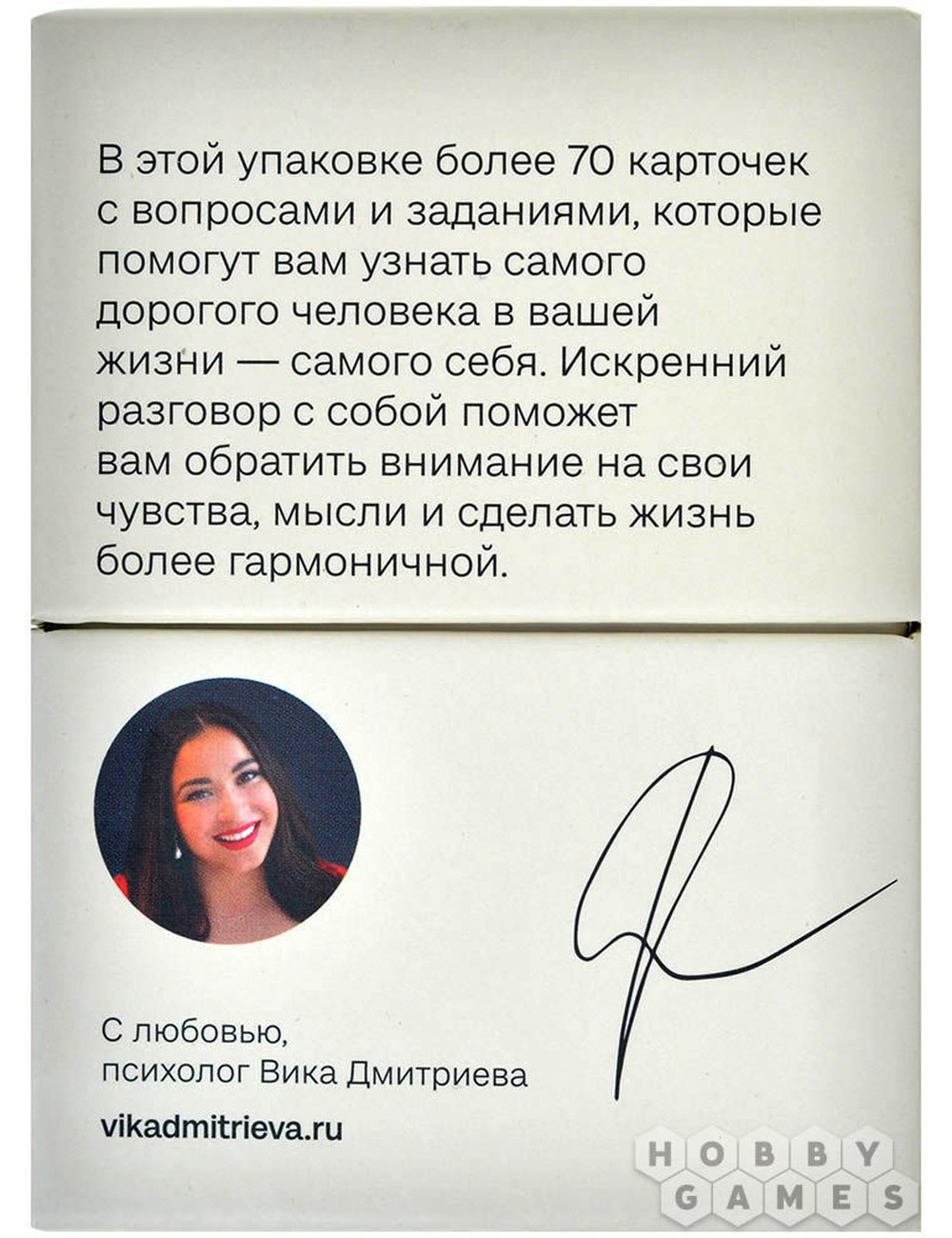 Эта игра включает в себя карты с вопросами и заданиями, которые при регулярном занятии смогут оказать значительное влияние на вашу жизнь. Отвечая на них, вы научитесь отличать свои истинные желания от навязанных, а это в свою очередь повысит вероятность их реализации. Также это поможет вам заботиться о своих потребностях самостоятельно и активно управлять своей жизнью, а не просто ждать изменений или случайных событий. Вдобавок, вы сможете принимать решения более осознанно, а не спонтанно.