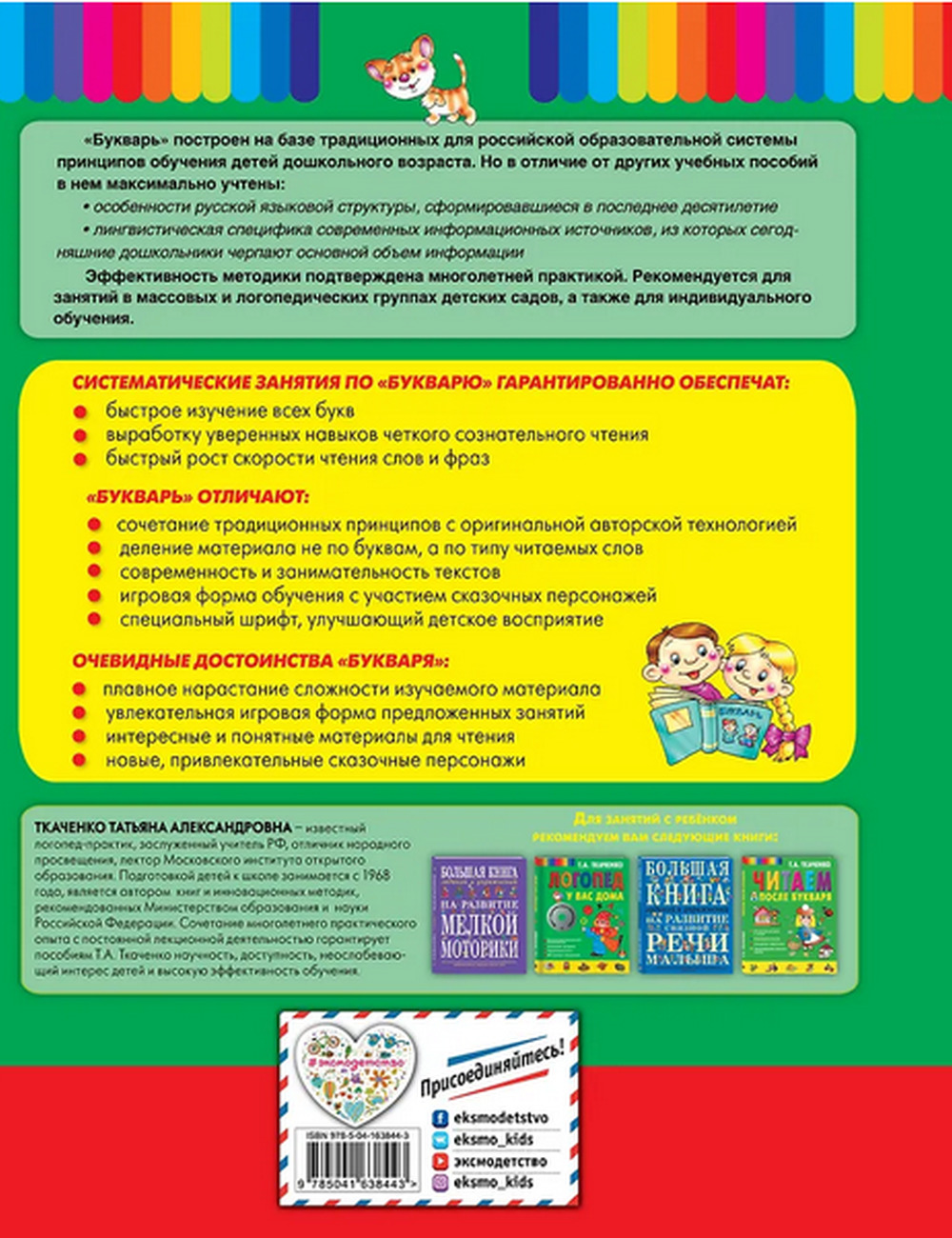 Этот букварь не просто обучит ребёнка чтению, но и поможет избежать характерных ошибок, освоить азы языкознания, введёт в лексикон ребёнка базовые термины русского языка.