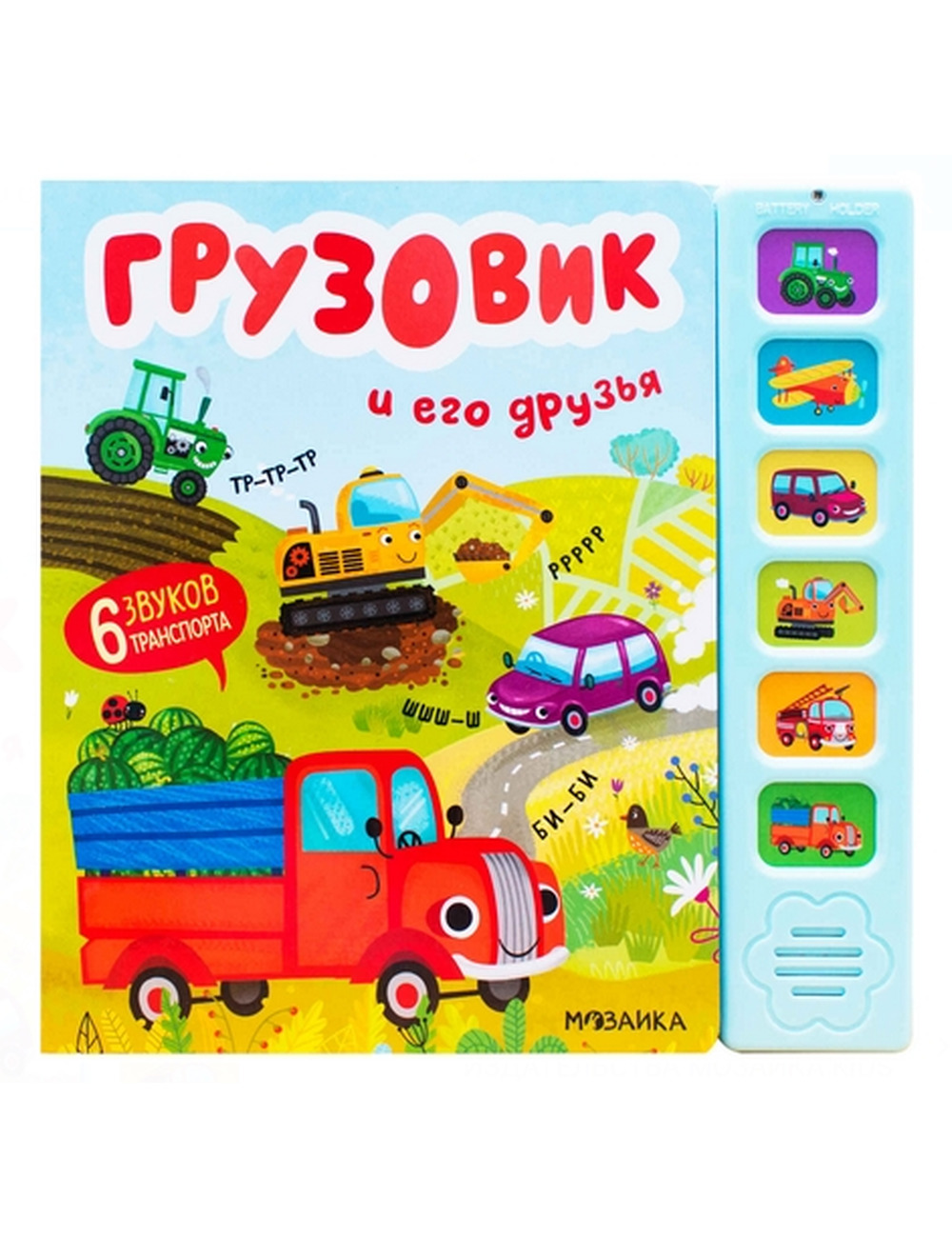 Книга «Грузовик и его друзья» из серии «Звуковые книги» с красочными иллюстрациями Анны Гузь и добрыми забавными стихами расскажет о приключениях грузовика, который везет арбузы.