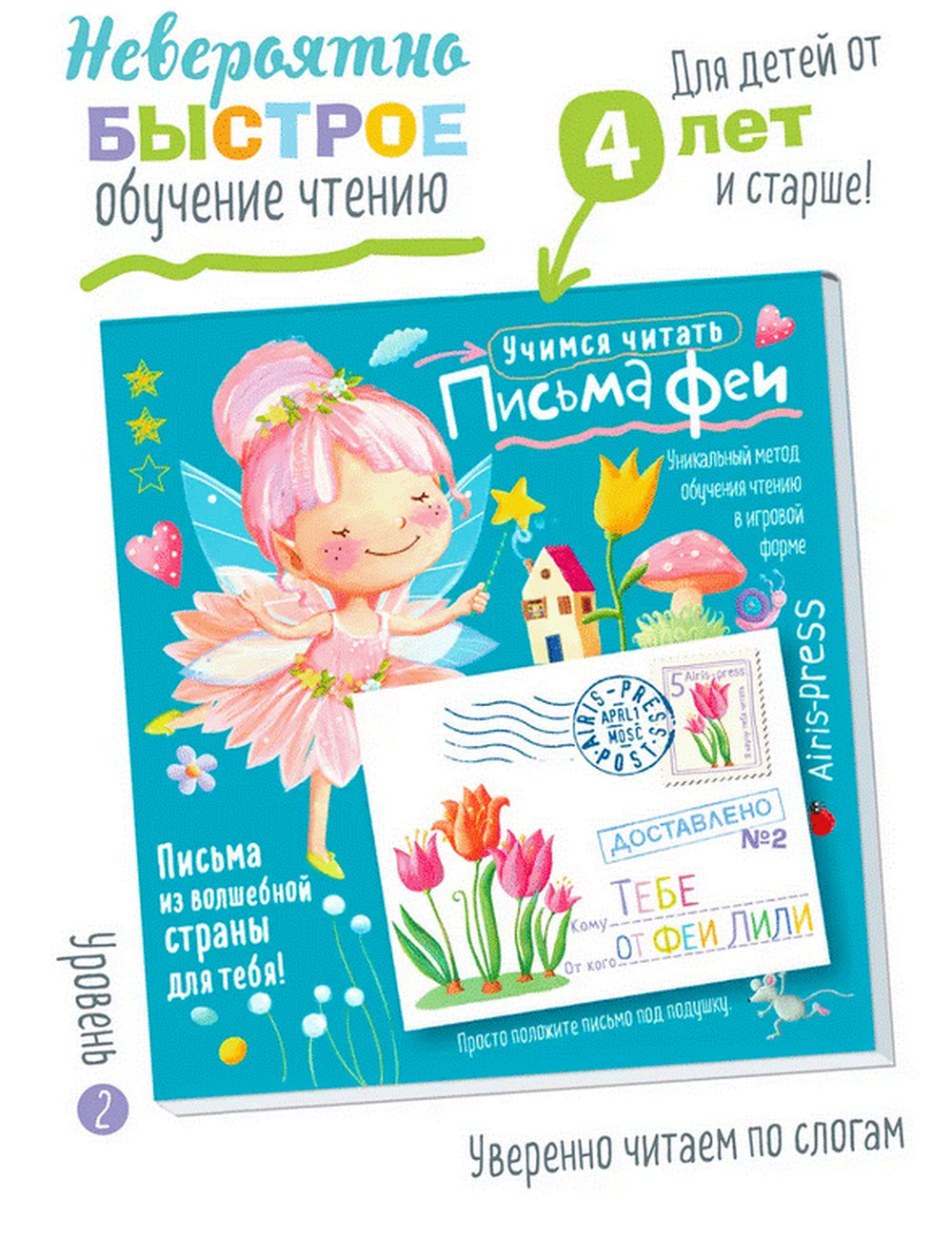 В блокноте представлен уникальный метод обучения чтению. Это 30 волшебных писем от феи Лили, адрессованных ребёнку. Ребёнок читатет их сам, без помощи взрослых. Родителям нужно просто каждый вечер незаметно класть готовое письмо под подушку спящего ребёнка. Уровень сложности рассчитан на детей, которые уверенно читают по слогам. При желании фее можно написать ответ. Для этого в блокноте есть готовые письма-конверты и марки-наклейки. Также в письмо можно дополнительно вложить листочек с интересным заданием.