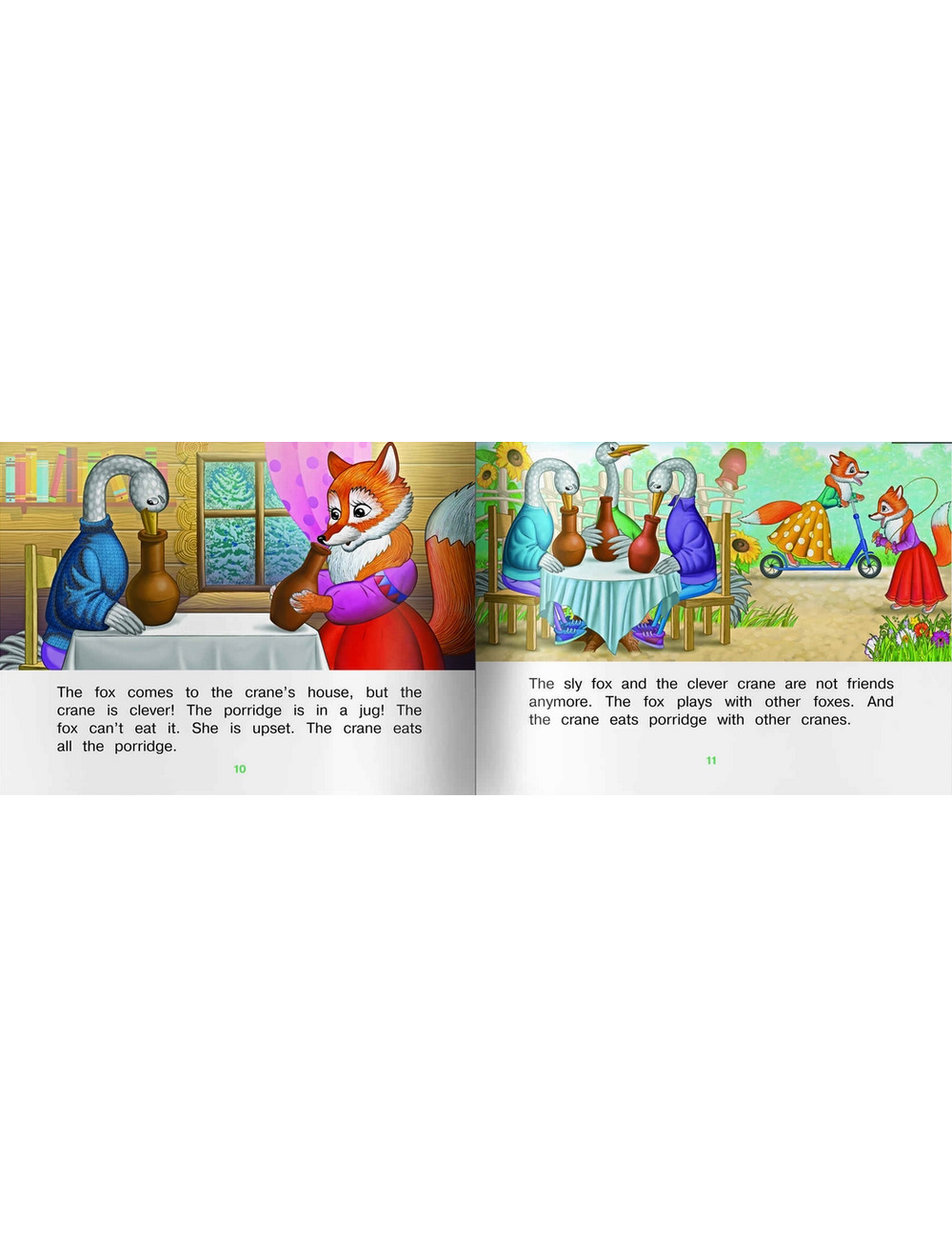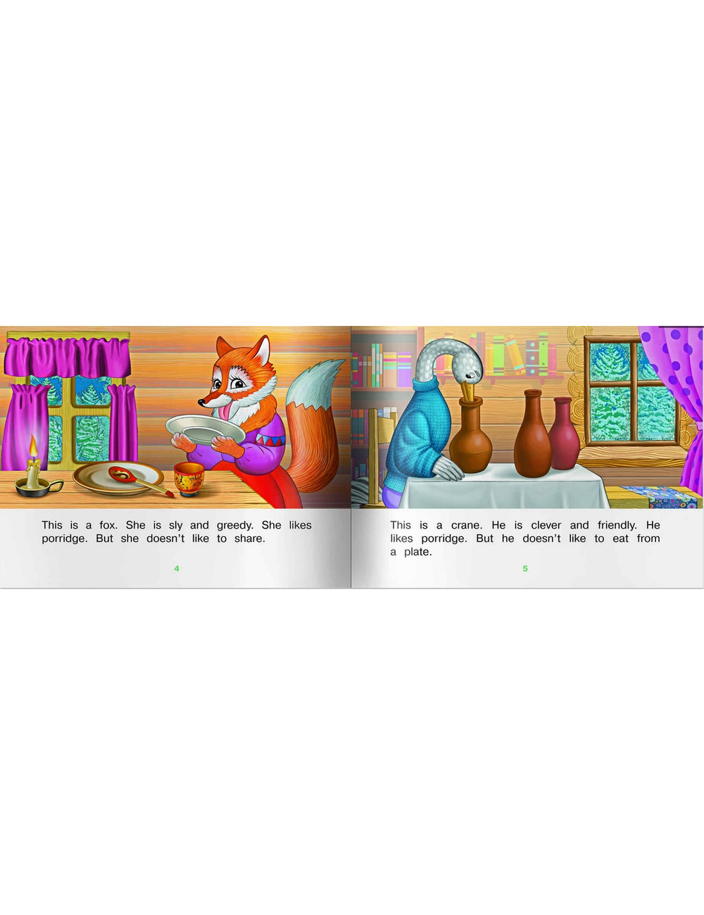 В русской народной сказке говорится о хитрой лисе, которая попыталась обмануть своего друга — журавля и получила по заслугам. Прочитав сказку, ребёнок познакомится с простым настоящим временем (Present Simple), научится использовать глагол like, поймёт разницу между предлогами on и in.