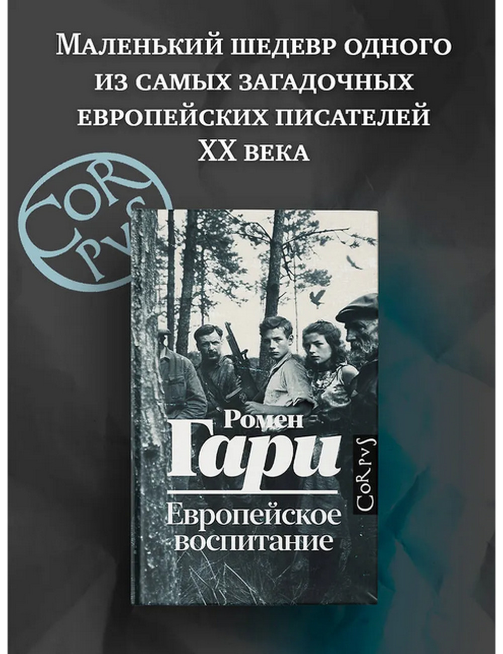 В 1945 году вышел первый роман писателя «Европейское воспитание», книга получила престижную премию Prix des Critiques. Это проникновенная история 14-летнего поляка Янека, которому рано пришлось повзрослеть, после того как во время оккупации Польши немецкими войсками он потерял родных и был вынужден навсегда покинуть свой дом. Жил мальчик в деревне Сухарки, недалеко от Вильнюса, в местах, так хорошо знакомых писателю по собственной юности. Блестящий талант рассказчика Ромена Гари, который сам прошел через испытания Второй мировой, придают роману особую глубину и позволяют читателям взглянуть на исторические события с очень личной точки зрения. Герои романа, оказавшиеся в нечеловеческих обстоятельствах, сохраняют в веру в гуманистические идеалы и ценность человеческой жизни.