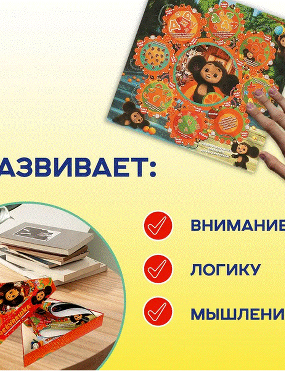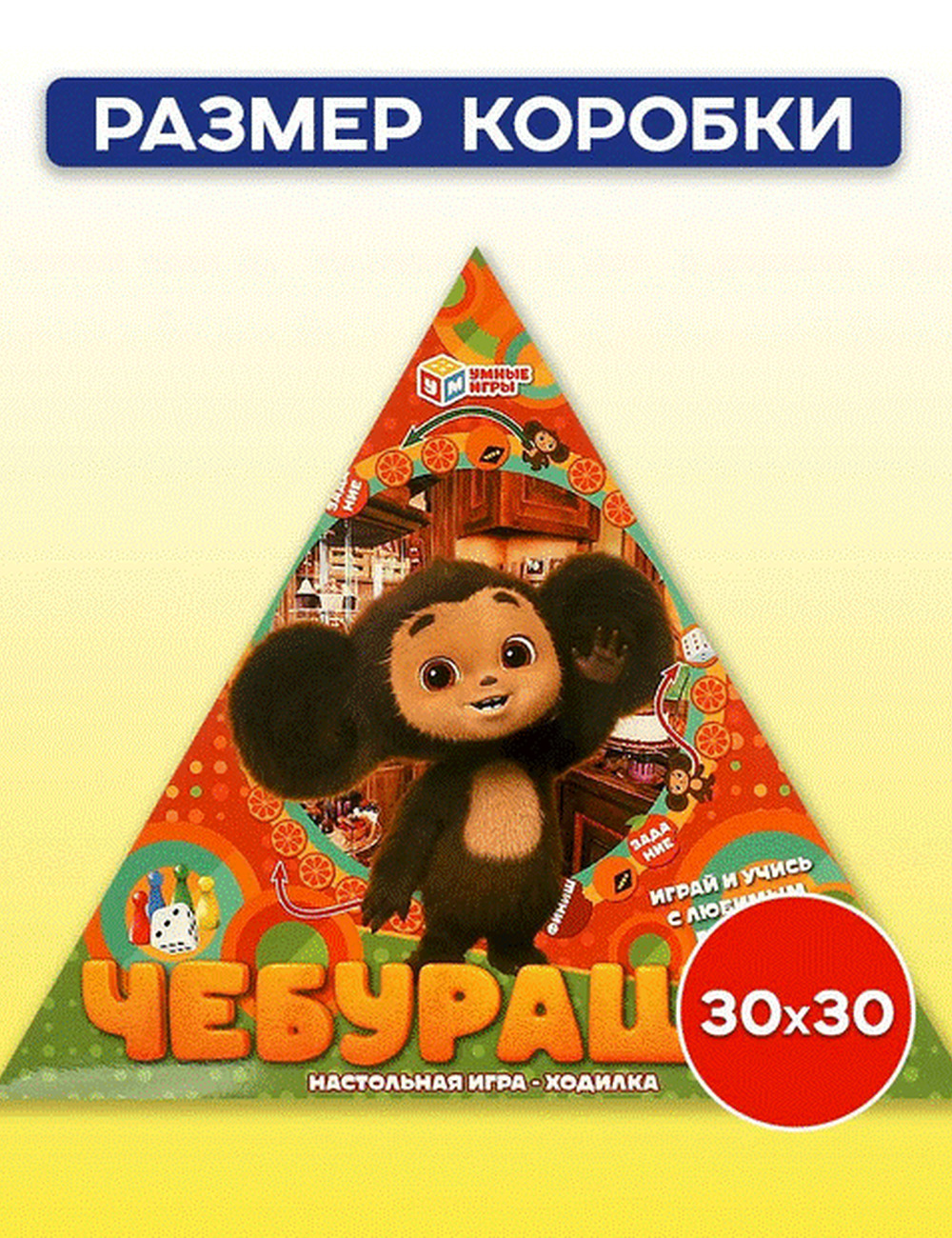 Настольная игра-ходилка в треугольной коробке «Чебурашка» ТМ «Умные игры» - играем и учимся вместе с любимым героем!