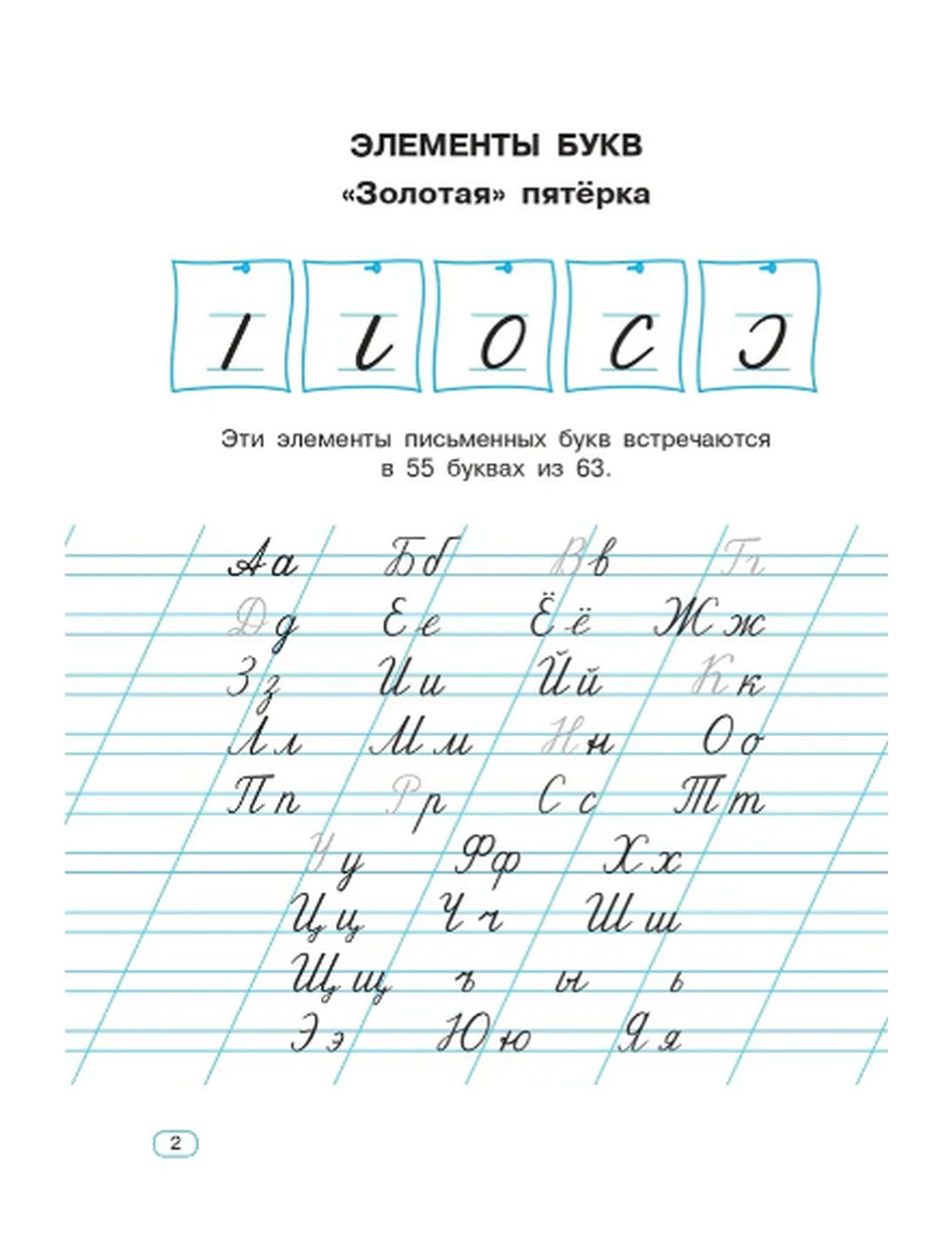 Тренажёр представляет собой рабочую тетрадь, в которой первоклассники потренируются аккуратно и красиво писать буквы, их элементы и варианты соединений, а также слоги, слова и предложения. Первоклассники напишут диктанты, короткие изложения и сочинения, будут списывать письменные и печатные тексты. Всё это поможет ученикам выработать красивый почерк и увеличить скорость письма.
