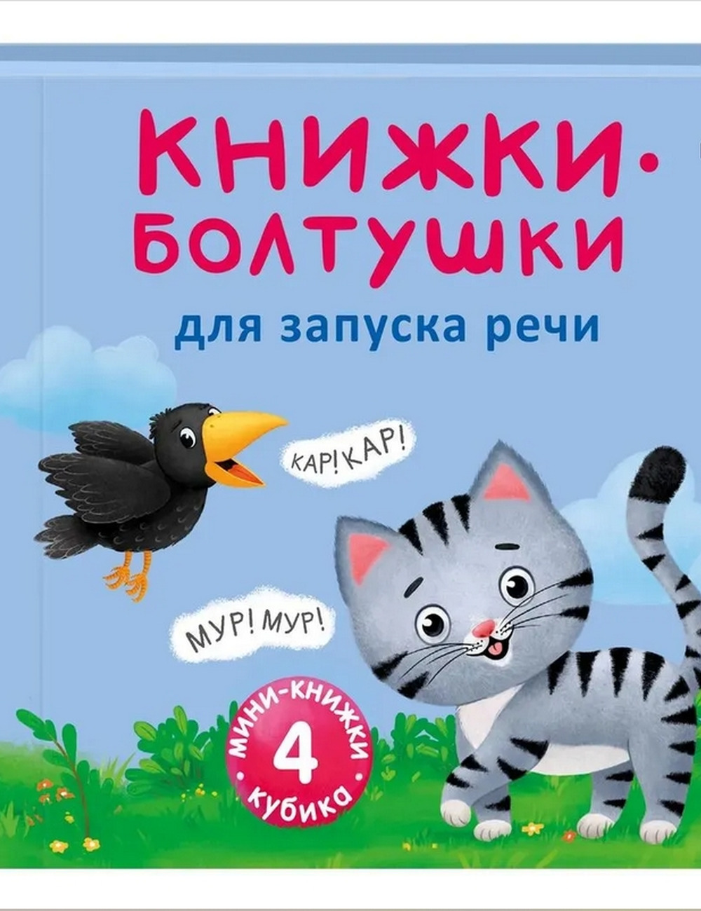 «КНИЖКИ-БОЛТУШКИ для запуска речи» – это развивающее игровое пособие, созданное для малышей, которые только учатся говорить. Внутри вы найдёте 4 книжки-кубика с бормоталками и звукоподражалками для детей с 6 месяцев до 3 лет, которые помогут запустить речь ребёнка и познакомят его с разными звуками русского языка.