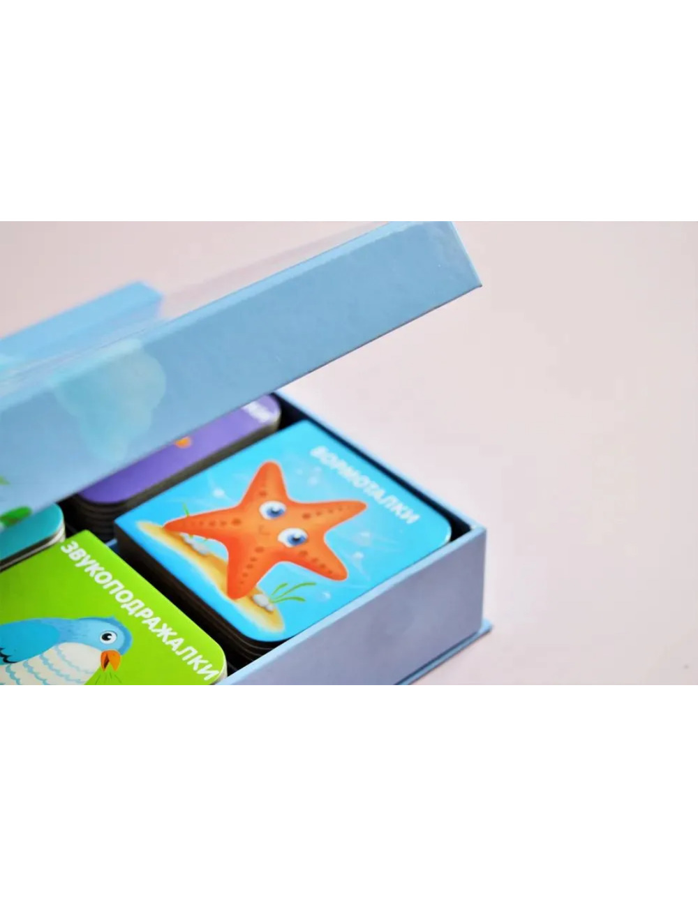 4 книжки-кубика с бормоталками и звукоподражалками в удобной коробке с магнитной крышкой