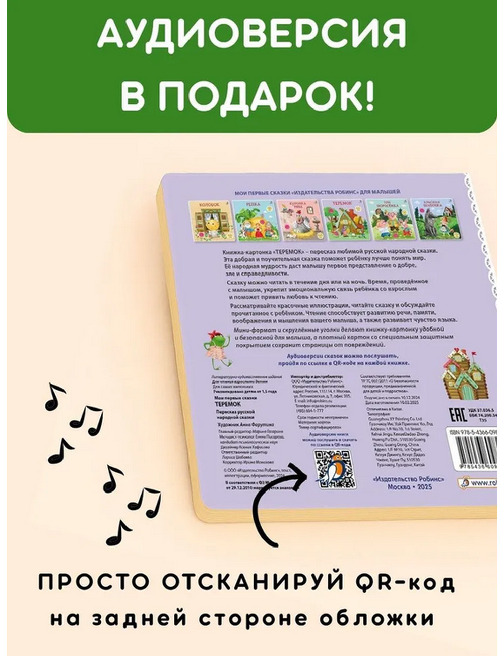 Книжка-картонка «ТЕРЕМОК» – пересказ любимой русской народной сказки. Эта добрая и поучительная сказка поможет ребёнку лучше понять мир. Её народная мудрость даст малышу первое представление о добре, зле и справедливости.