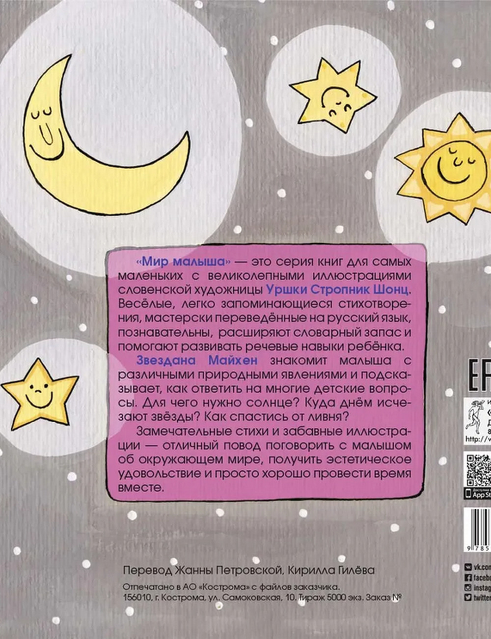 Звездана Майхен знакомит малыша с различными природными явлениями и подсказывает, как ответить на многие детские вопросы. Для чего нужно солнце? Куда днём исчезают звёзды? Как спастись от ливня?