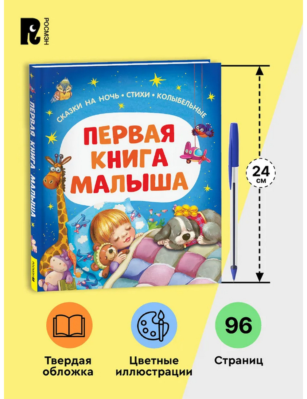Сборник «Первая книга малыша. Сказки на ночь, стихи, колыбельные» издан в качественном полиграфическом исполнении и станет отличным подарком мальчику и девочке на день рождения и любой праздник.
