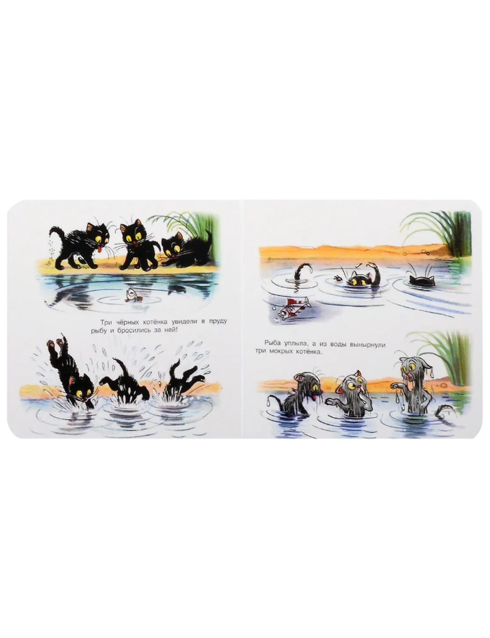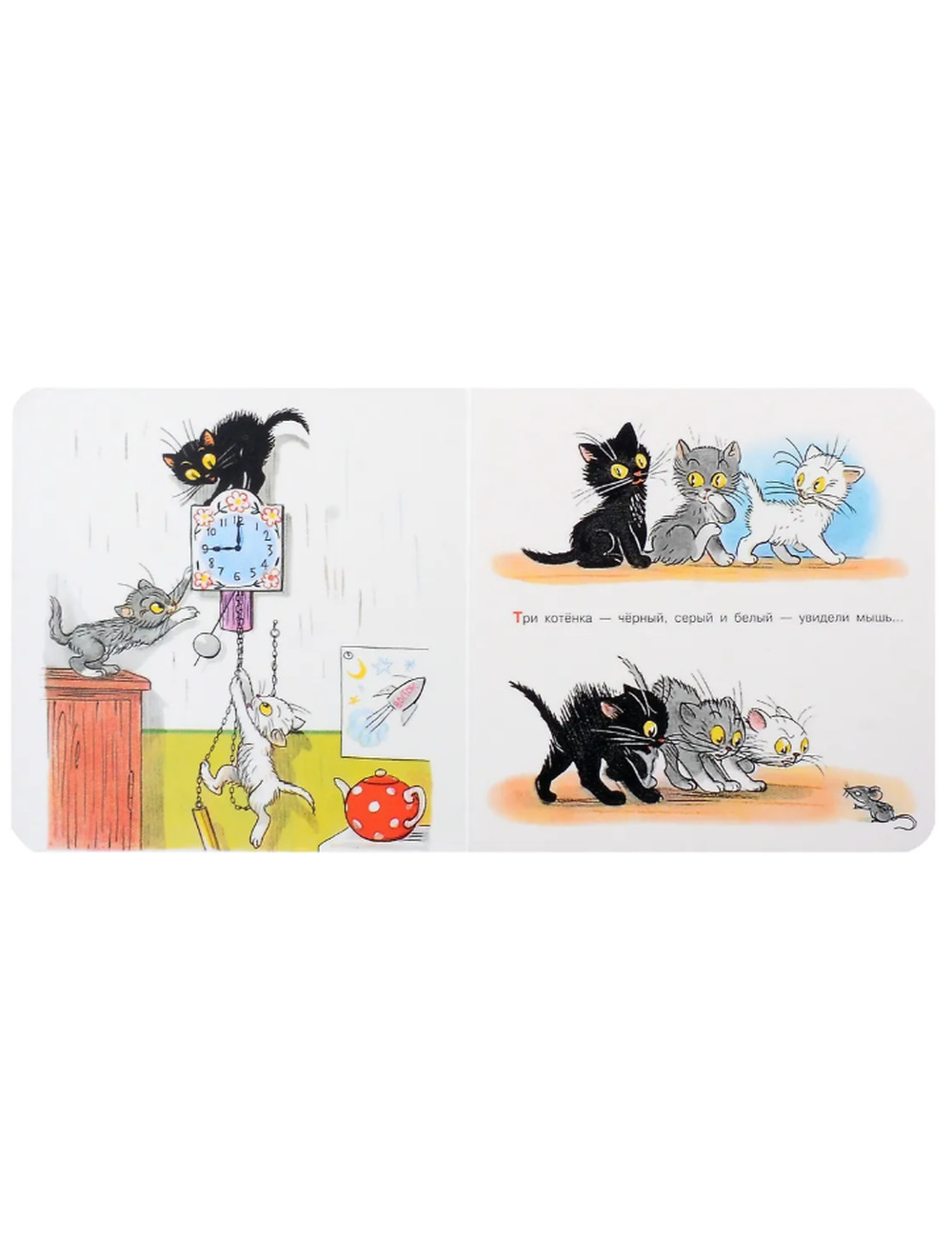В этой книжке В. Сутеева любопытных крошек ждут три непоседливых котёнка!
