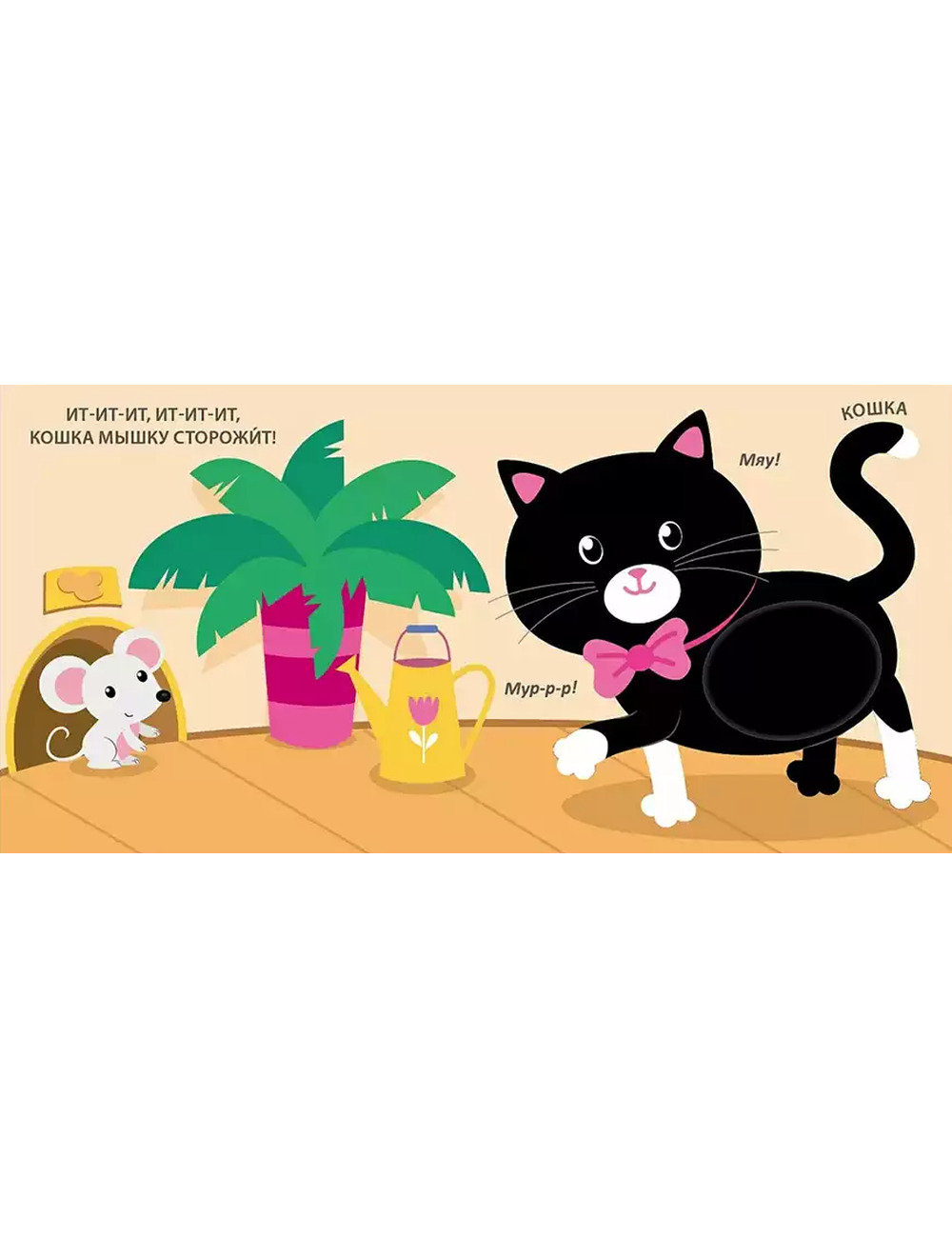- Благодаря ярким иллюстрациям, тактильным вставкам и чистоговоркам ребёнок научится произносить первые слова, расширит кругозор, будет развивать мелкую моторику, тренировать слуховое и зрительное восприятие, внимание и память.