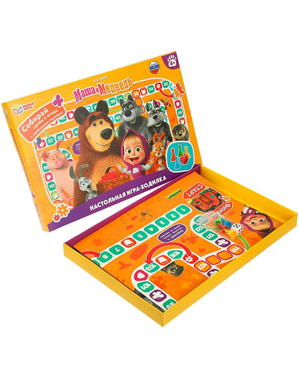 Комплектация: игровое поле - 1 шт., фишка - 4 шт., кубик - 1 шт., правила игры