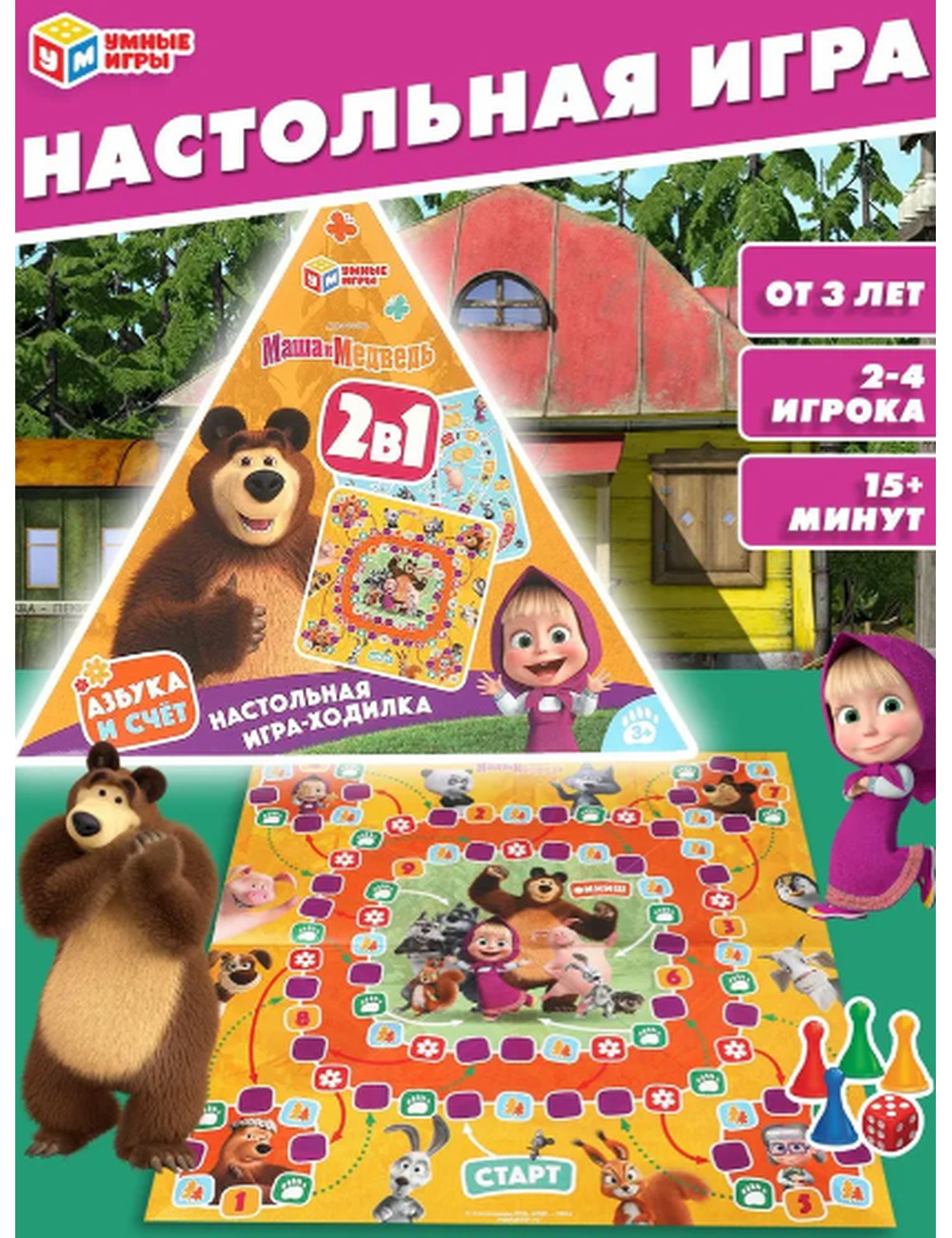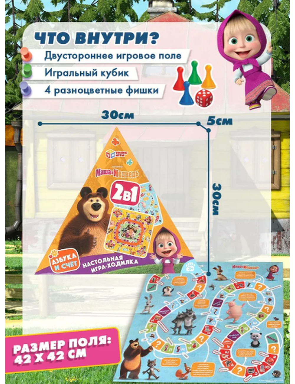 Настольная игра ходилка Маша и медведь Азбука и счёт 2 в 1 – веселое и интересное развлечение, которое порадует как детей, так и взрослых. Игра поможет развить логику, внимание и терпение у ваших детей.