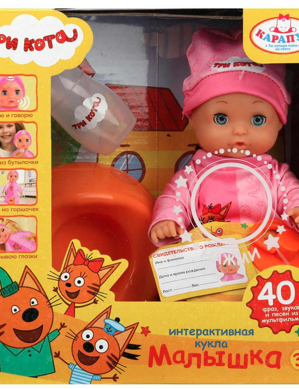 Развивающая интерактивная кукла «Три кота. Малышка» ТМ «Карапуз» станет прекрасным подарком для вашей принцессы: