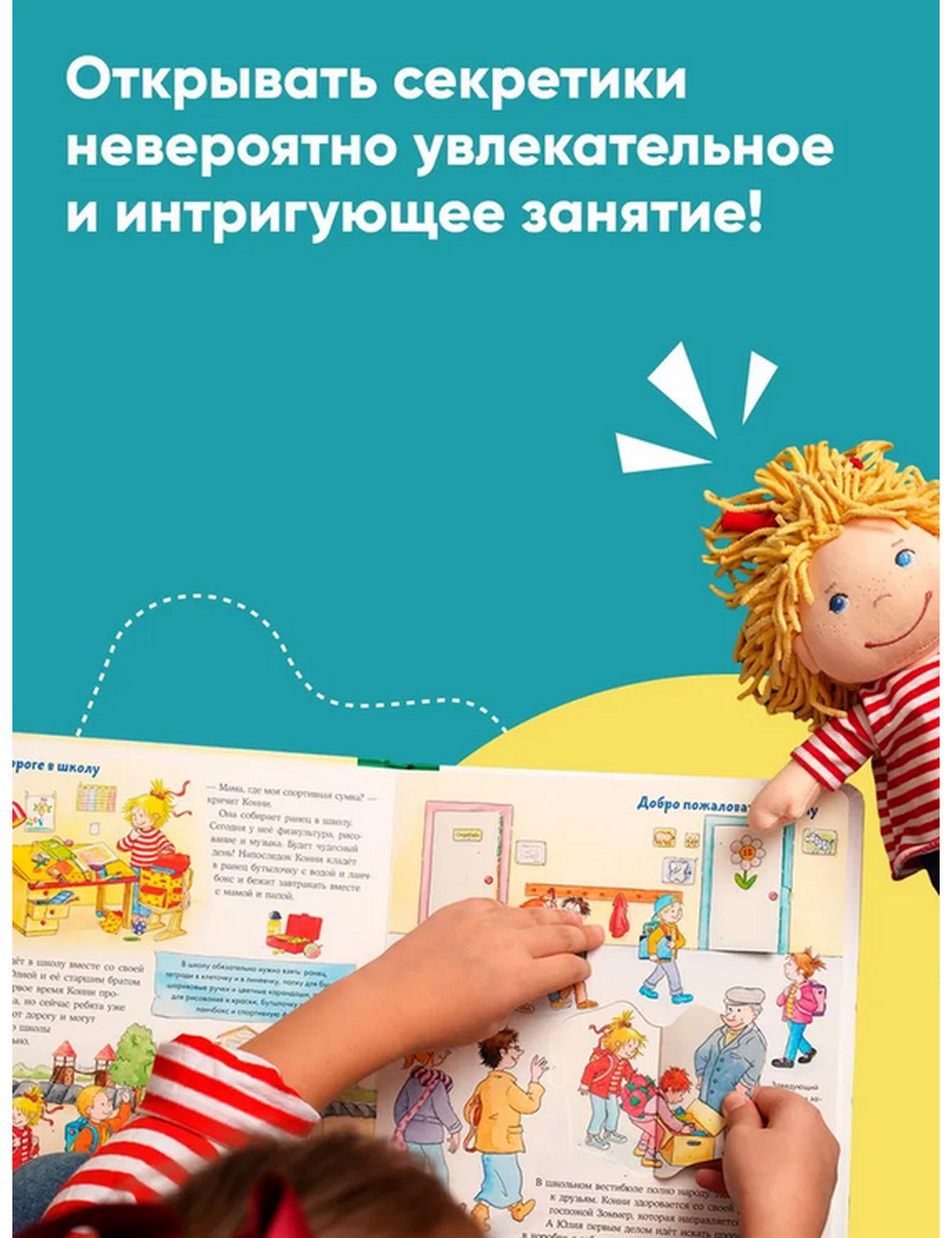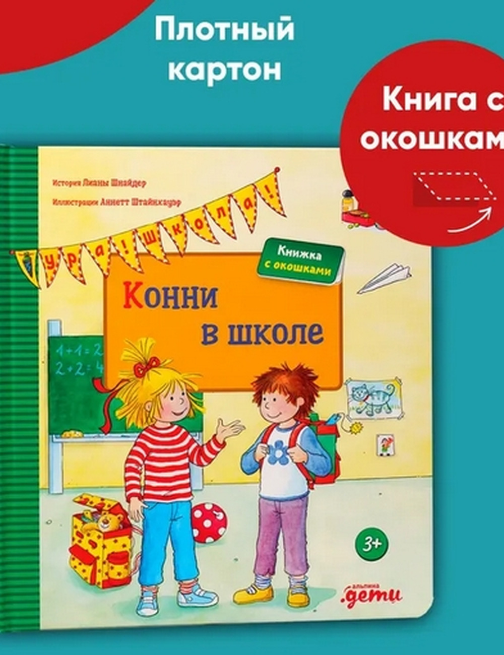 Вместе с Конни ребёнок узнает, как организован школьный день, познакомится с основными предметами, запомнит, что нужно обязательно взять с собой на уроки. А ещё в книжке с окошками можно открыть дверь в класс, полистать учебники и поиграть вместе с Конни на школьном дворе.