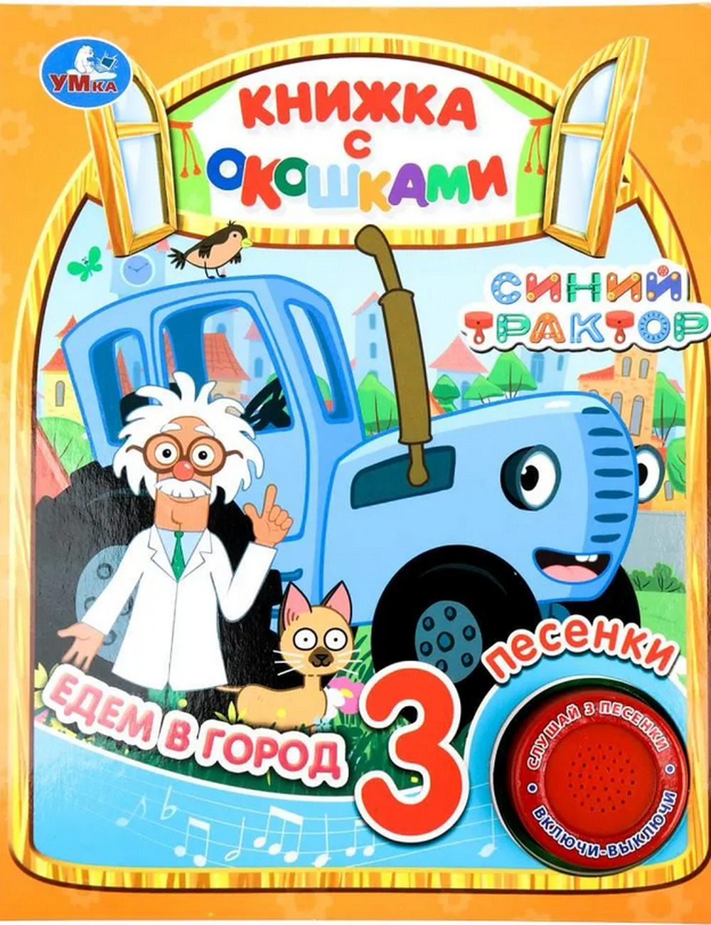 Ребёнок с удовольствием будет листать плотные страницы, рассматривать яркие картинки, открывать окошки и смотреть, кто там спрятался, а также нажимать на кнопку и слушать весёлые песенки из м/ф. Малыш легко освоит включение звука: по нажатию на кнопку включится первая песенка, при втором нажатии выключится, в 3-ий раз - заиграет следующая песенка и т.д. Благодаря компактному формату книгу удобно взять с собой в дорогу.