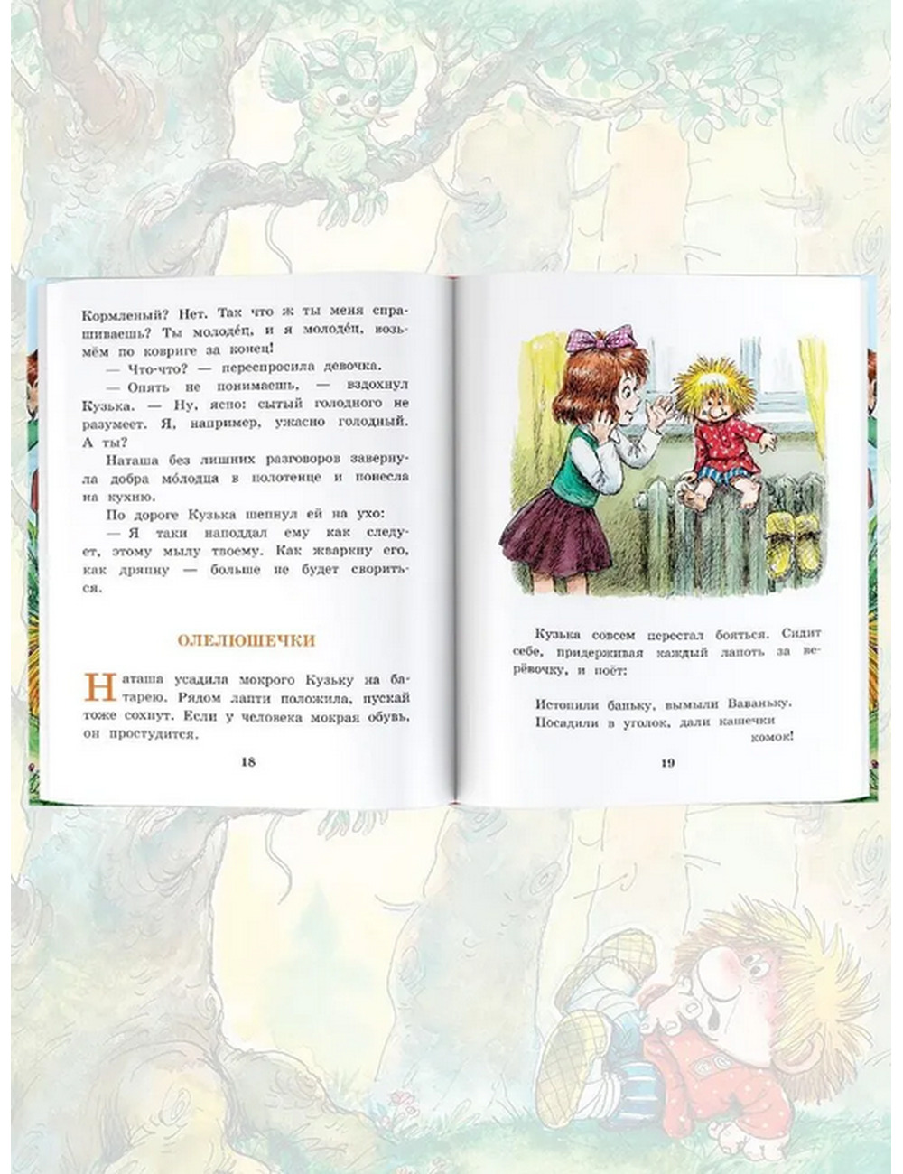 Добрая история от классика детской литературы Татьяны Александровой с иллюстрациями знаменитого художника А. Савченко отлично подойдёт для чтения с детьми — эта книга и развеселит, и заставить задуматься о важных вещах, таких как ответственность, честность, дружба. Пригласите Кузьку в гости!