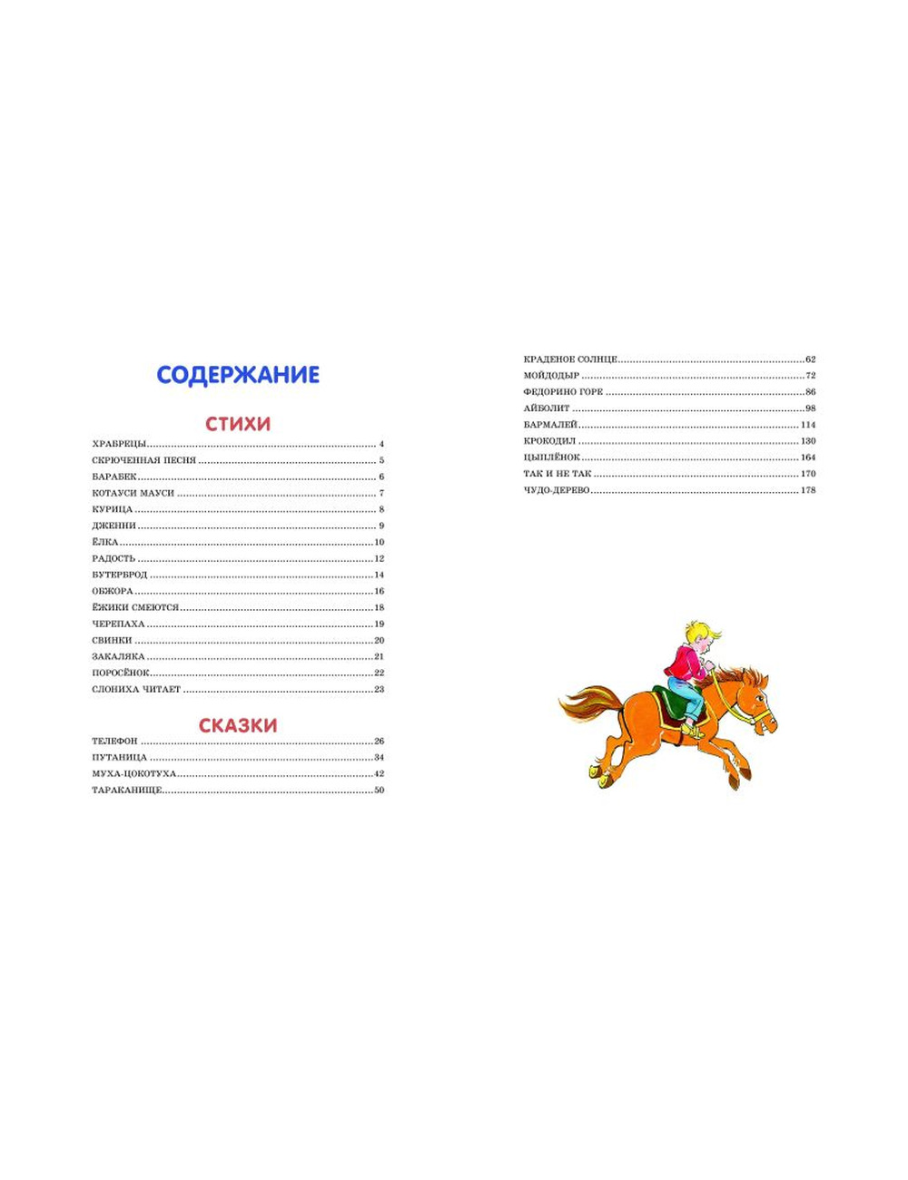 В сборник вошло 16 стихов («Ёжики смеются», «Храбрецы», «Поросёнок» и другие) и 13 сказок («Телефон», «Путаница», «Тараканище», «Мойдодыр» и многие другие).