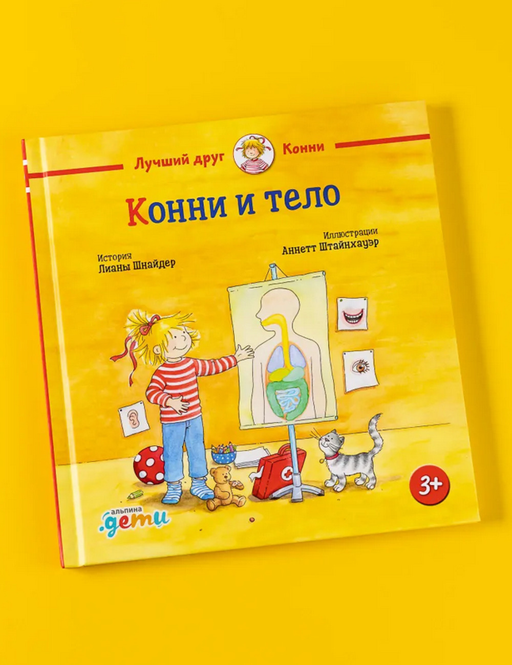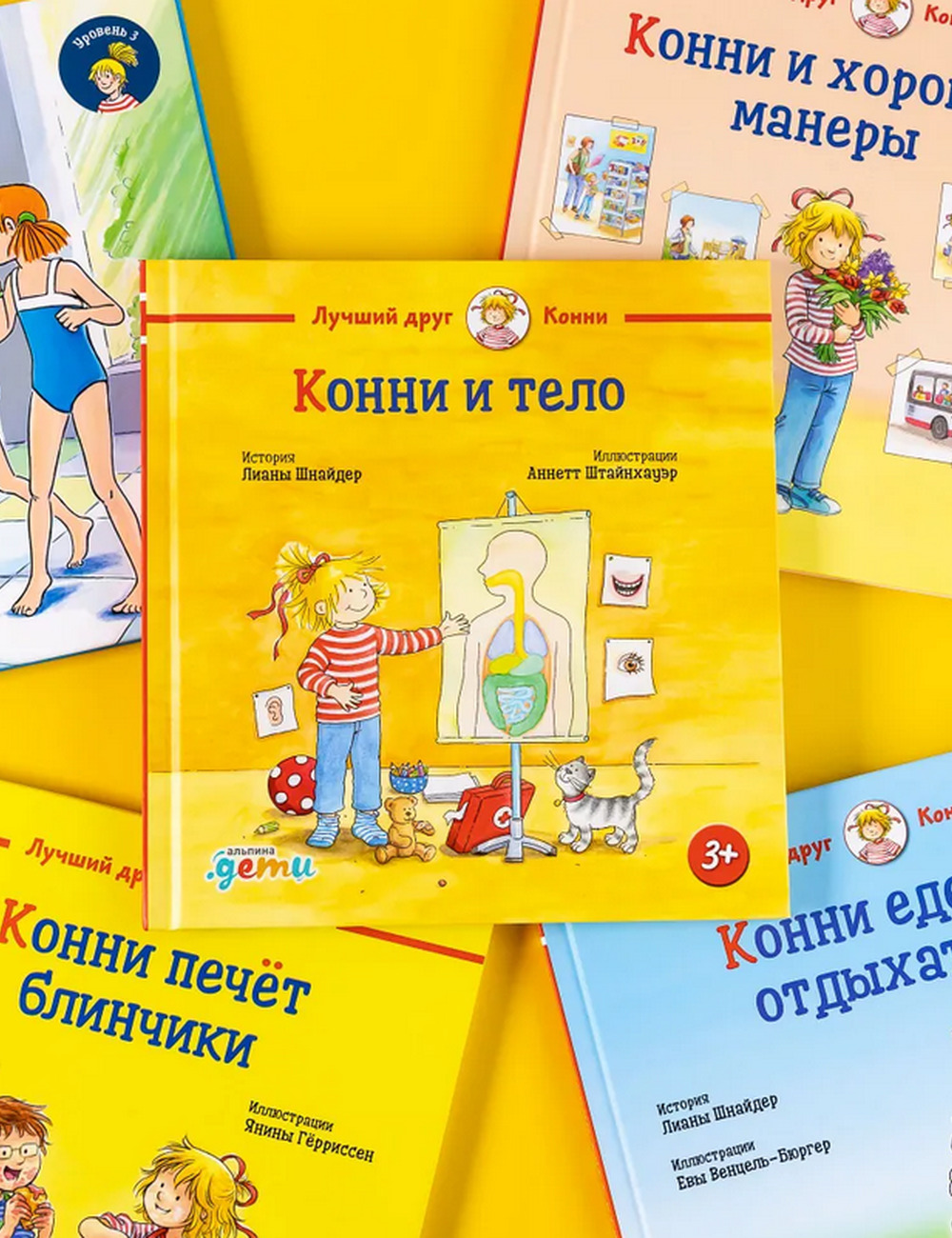 В конце книги вы найдёте подробные иллюстрации с названиями разных частей тела, а история из жизни Конни поможет на простых примерах объяснить ребёнку, как устроено наше тело.