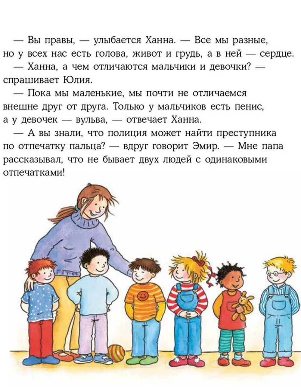 Конни тоже очень интересно, как у неё всё устроено. К счастью, у воспитательницы Ханны и мамы с папой всегда готовы ответы на самые заковыристые вопросы!
