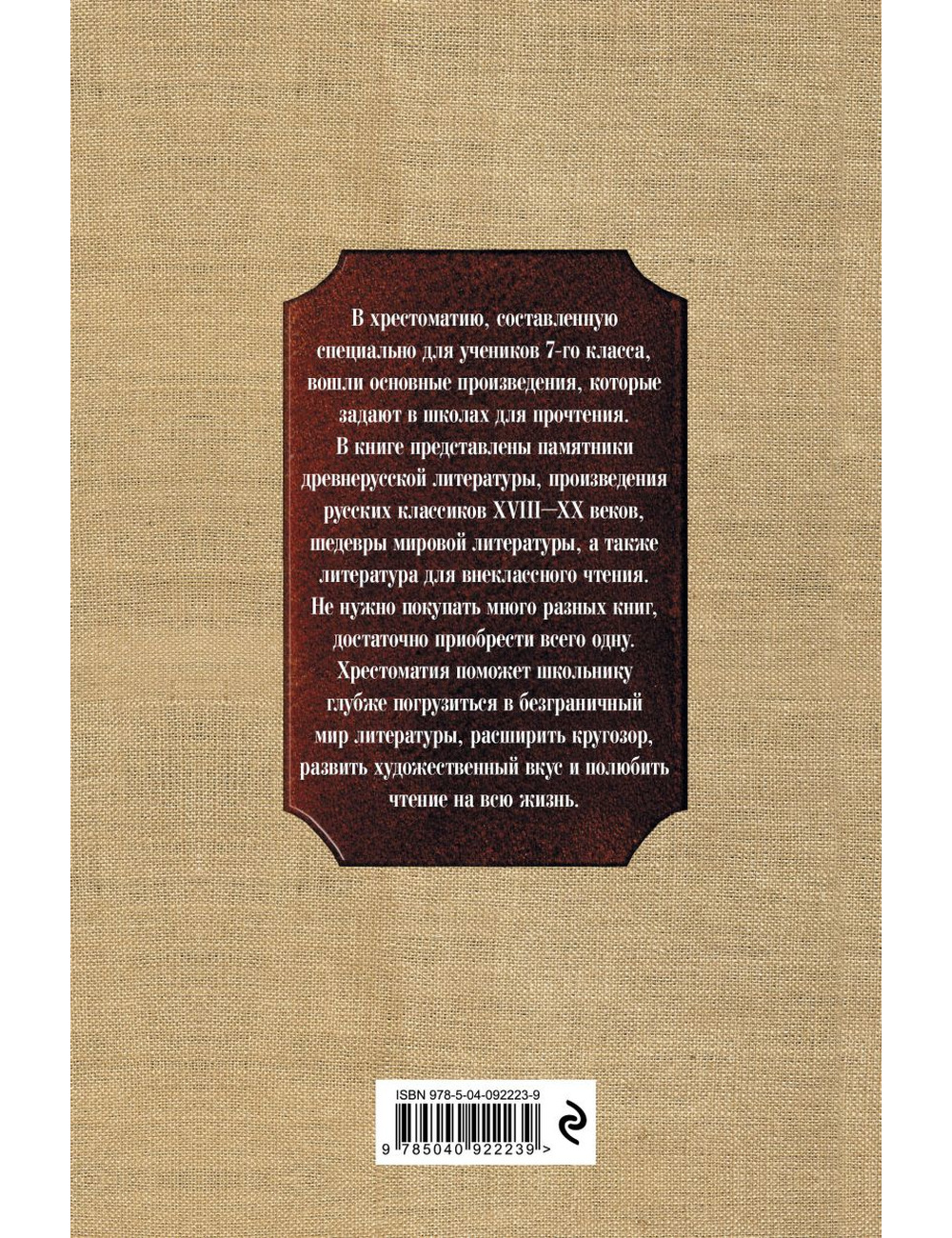 Хрестоматия для 7 класса содержит произведения, которые входят в список школьной литературы на лето большинства школ, и может быть использована со всеми рекомендованными учебниками.