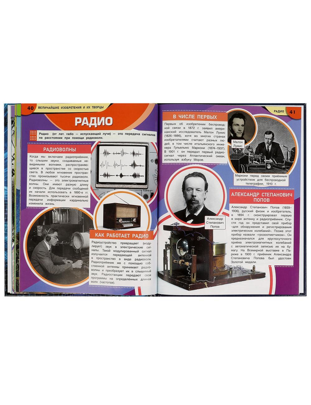 На страницах этой занимательной энциклопедии юного читателя ждёт множество интересных фактов о великих изобретателях и их открытиях, которые оказывали и оказывают большое влияние на нашу жизнь. Зрелищные картинки привлекут внимание ребёнка, помогут в лёгкой форме усвоить новую информацию.