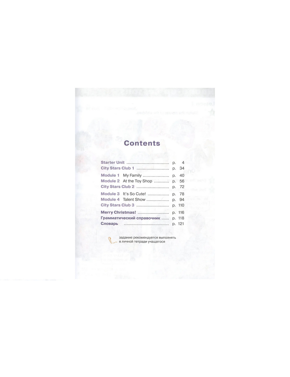 Учебник является основным компонентом УМК серии "Звёздный английский" для учащихся 3 класса общеобразовательных организаций и школ с углублённым изучением английского языка. Учебник включает тексты и задания про русскую культуру, содержит упражнения на формирование общеучебных навыков и умений, предоставляет возможность для дифференцированного подхода к деятельности учащихся, имеет воспитательную и развивающую ценность материалов и широкие возможности для социализации учащихся. Содержание учебника направлено на достижение личностных, метапредметных и предметных результатов освоения основной образовательной программы.