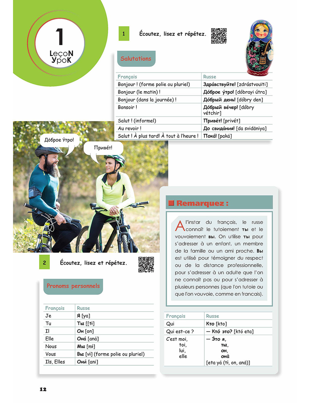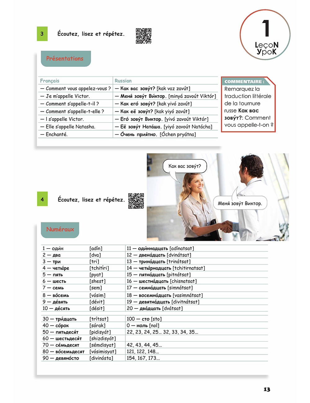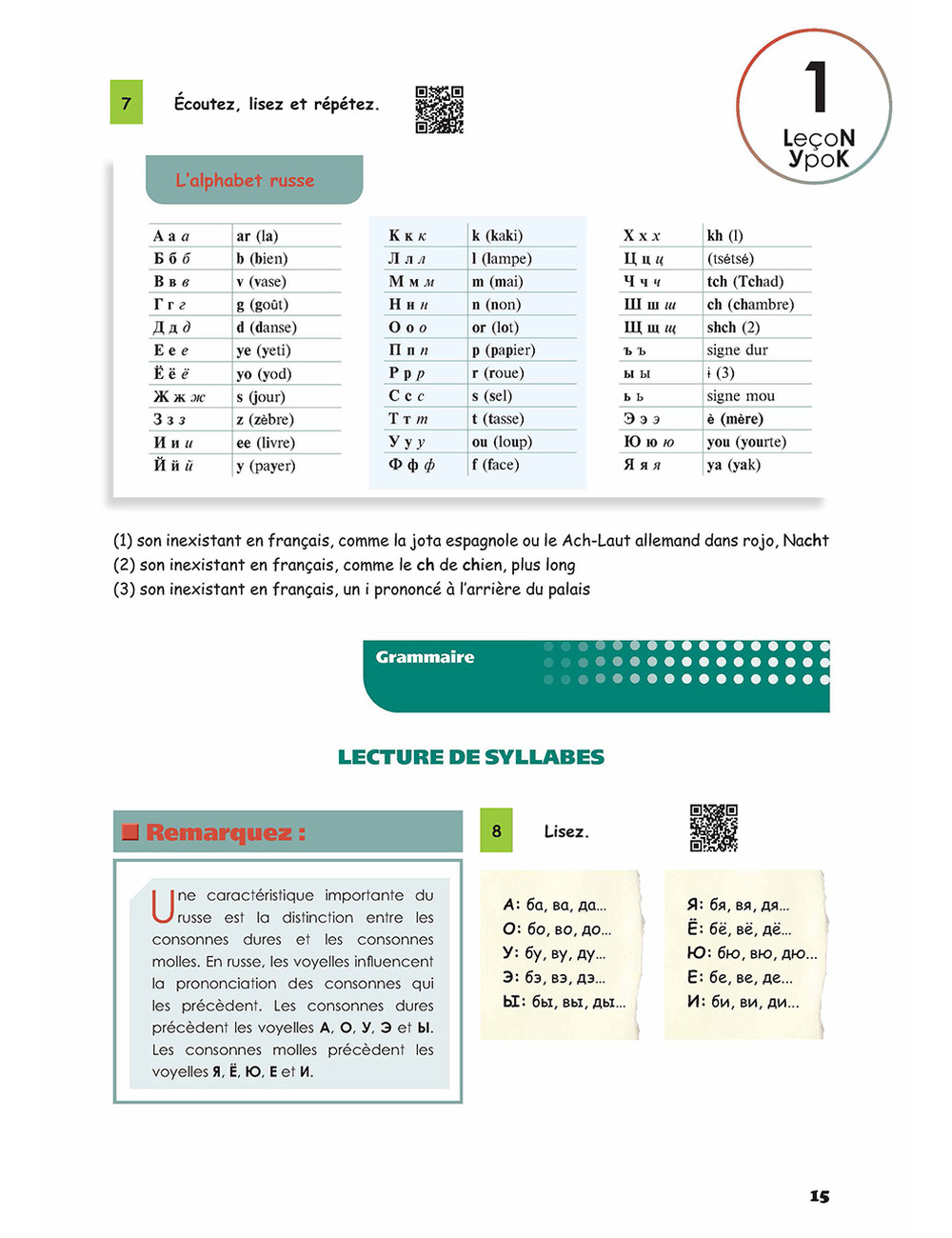 The book is aimed at foreigners for whom French is their native language or an intermediary language and who have not previously studied Russian.