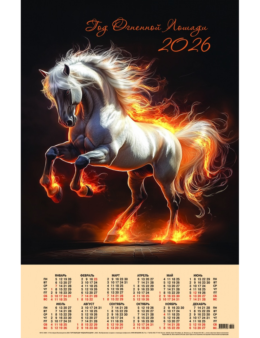 Технические характеристики :Календарь листовой 600*900 мм.Бумага 130 гр.