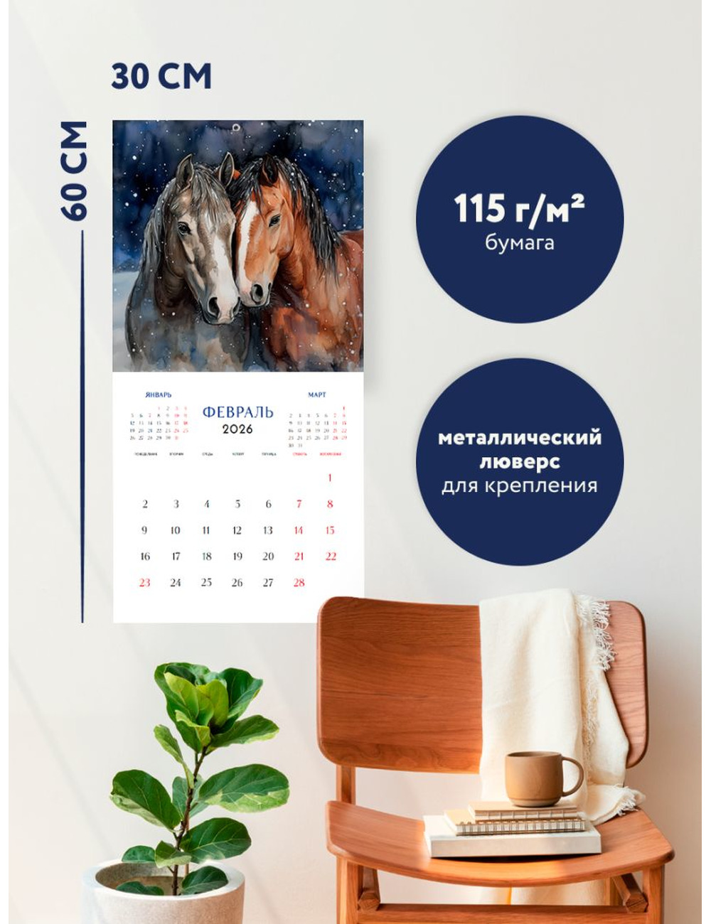 - Тип календаря — настенный перекидной.