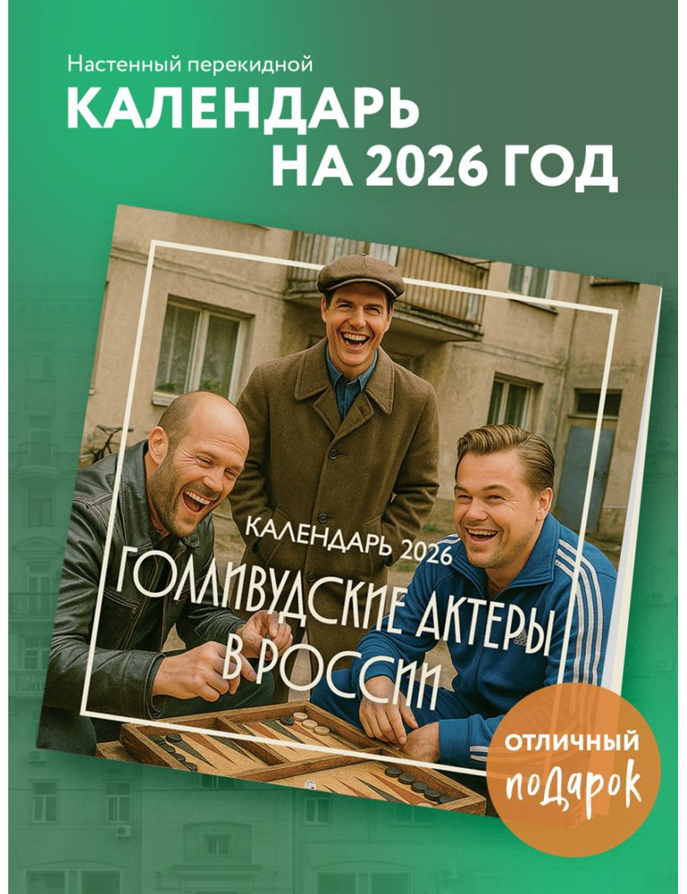 «Голливудские актеры в России» — настенный календарь на 2026 год, где звезды мирового кино «примеряют» на себя нашу суровую реальность. Том Круз в шапке-ушанке? Анджелина Джоли с балалайкой? В этом календаре возможно всё! Каждый месяц — новый зарубежный гость в типично русских ситуациях, с юмором и удобной календарной сеткой. Отличный подарок для тех, кто любит кино и не прочь посмеяться над стереотипами.