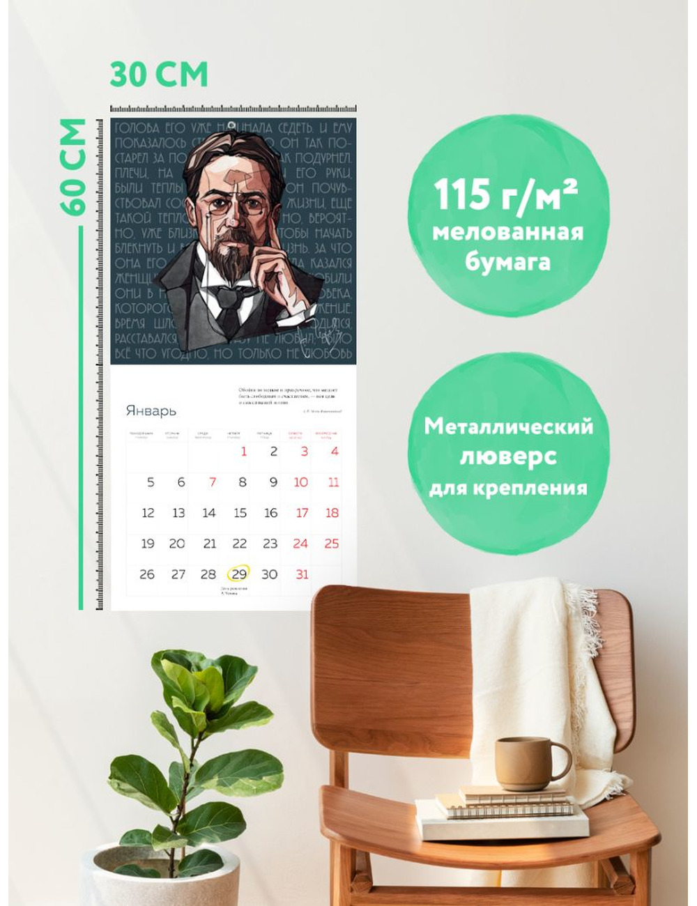 • Тип календаря — настенный перекидной.
