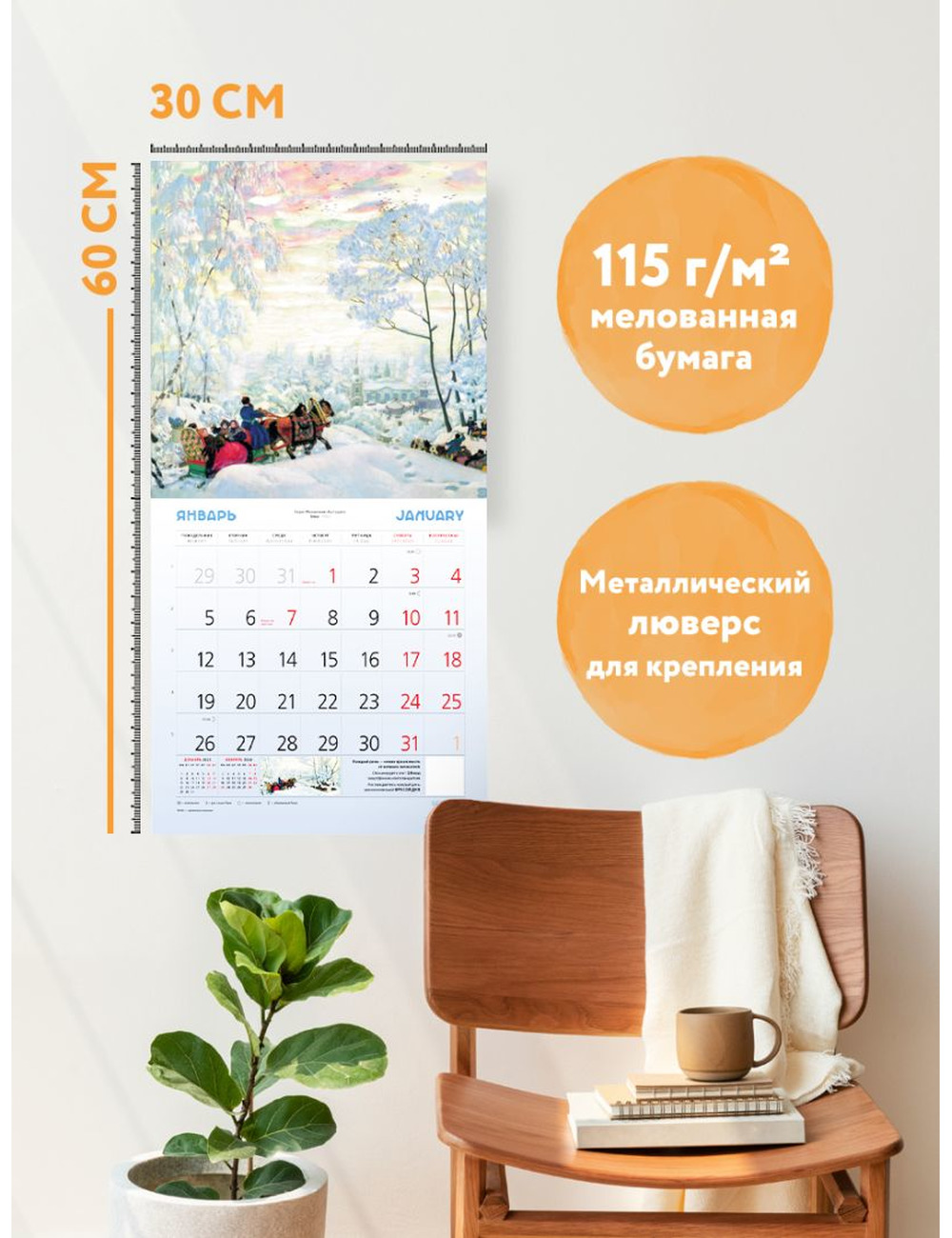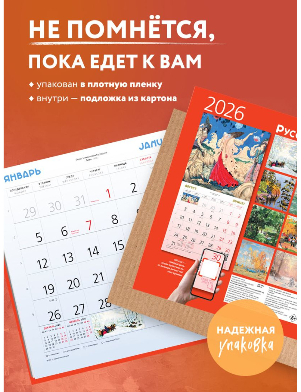 В этом настенном перекидном календаре на 2026 год представлены знаменитые картины великих художников. Повесьте этот календарь в своем доме или на рабочем месте, и он достойно украсит любой интерьер. А календарный блок напомнит о важных событиях года. В центре календаря помещен большой арт-постер, который может стать отдельным декоративным украшением интерьера.