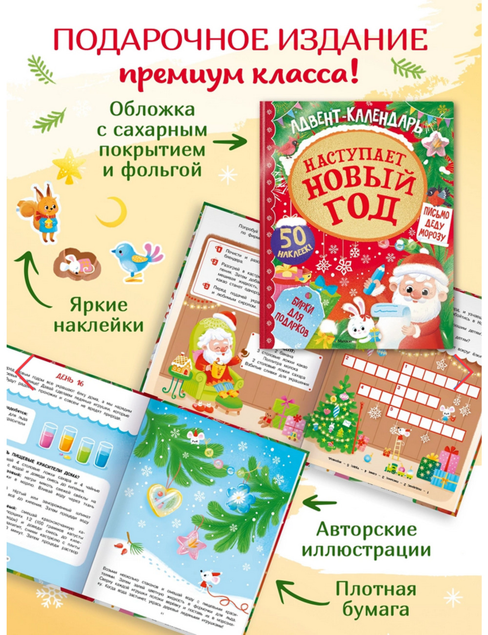 С этой книгой ваш ребёнок не только займёт себя на время томительного ожидания праздника, но и сможет прочувствовать течение времени.