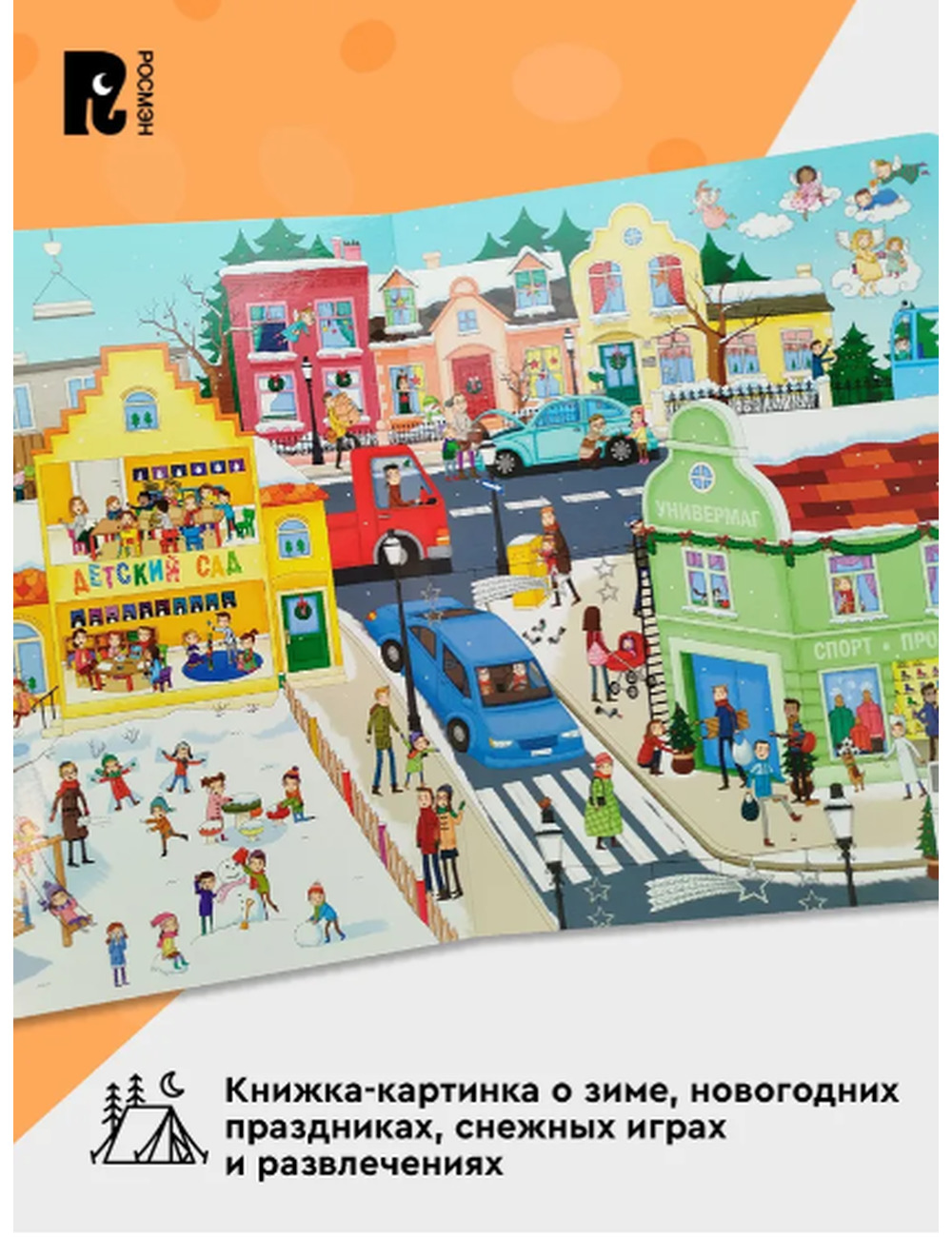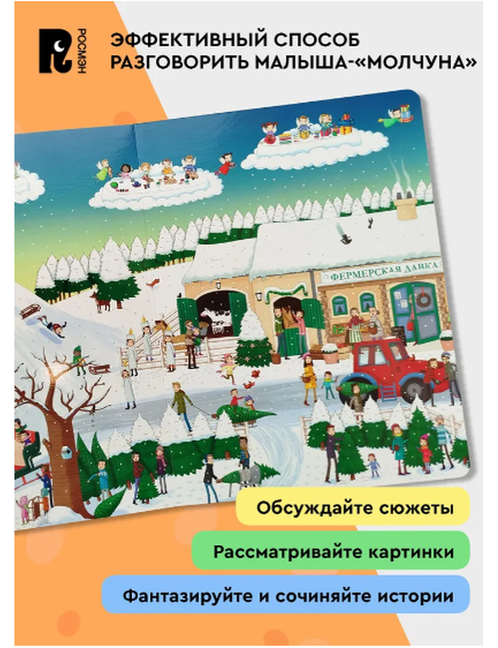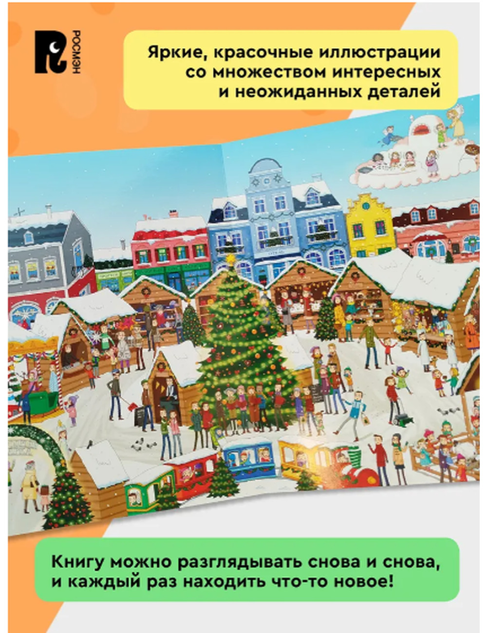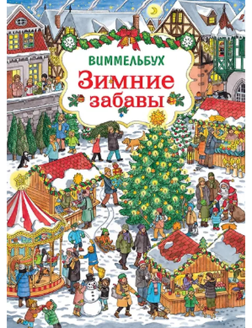 Виммельбух - удивительная и необычная книжка-картинка для рассматривания. На ее страничках все время что-то происходит. В этой новогодней книге люди гуляют по праздничному базару, дети катаются с горок, а в мастерской подарков кипит работа! Новогодний виммельбух с яркими, забавными иллюстрациями со множеством интересных и неожиданных деталей, выполненных на плотном картоне, непременно понравится детям. Веселое и полезное развлечение на все зимние праздники станет отличным подарком для самых маленьких и любопытных.