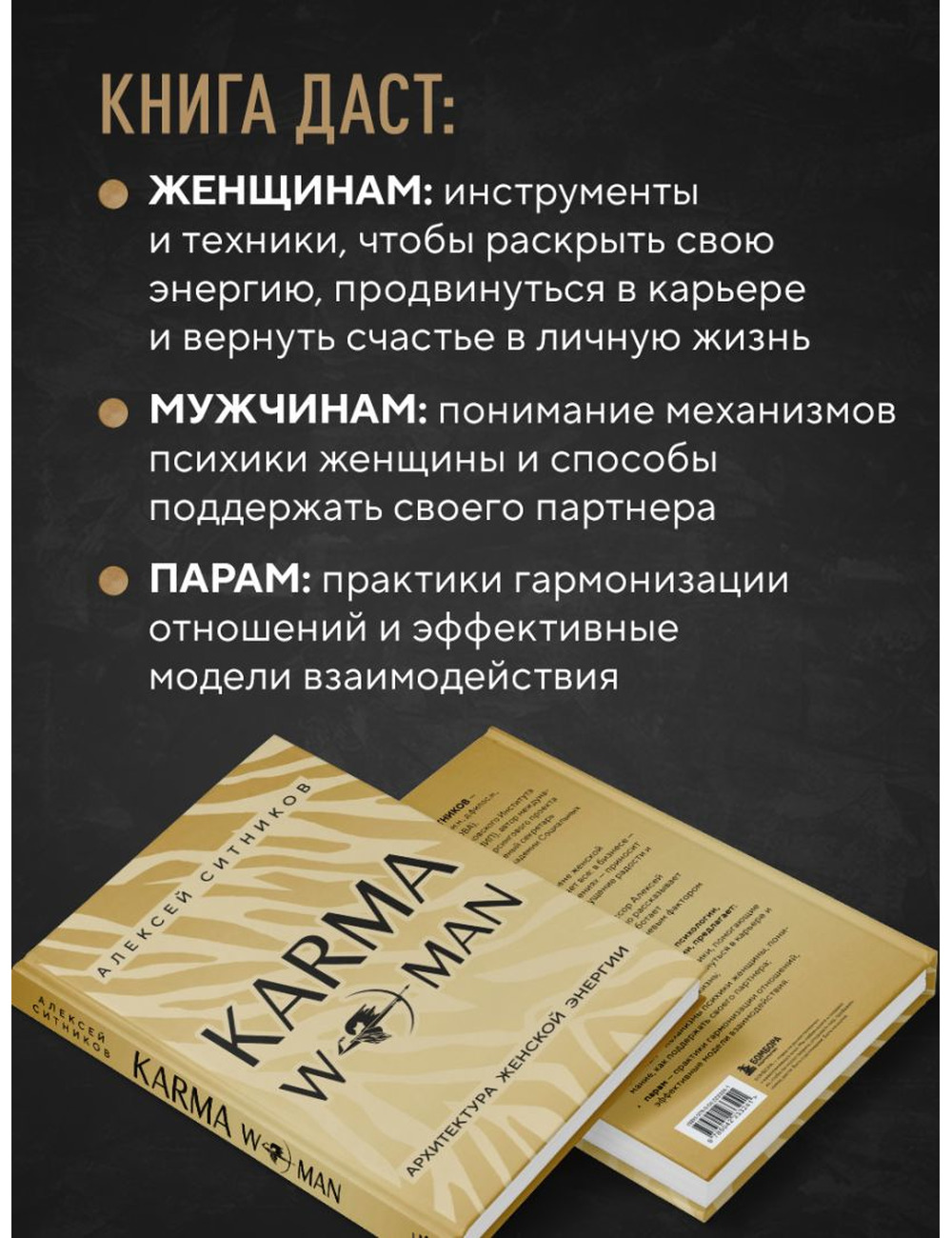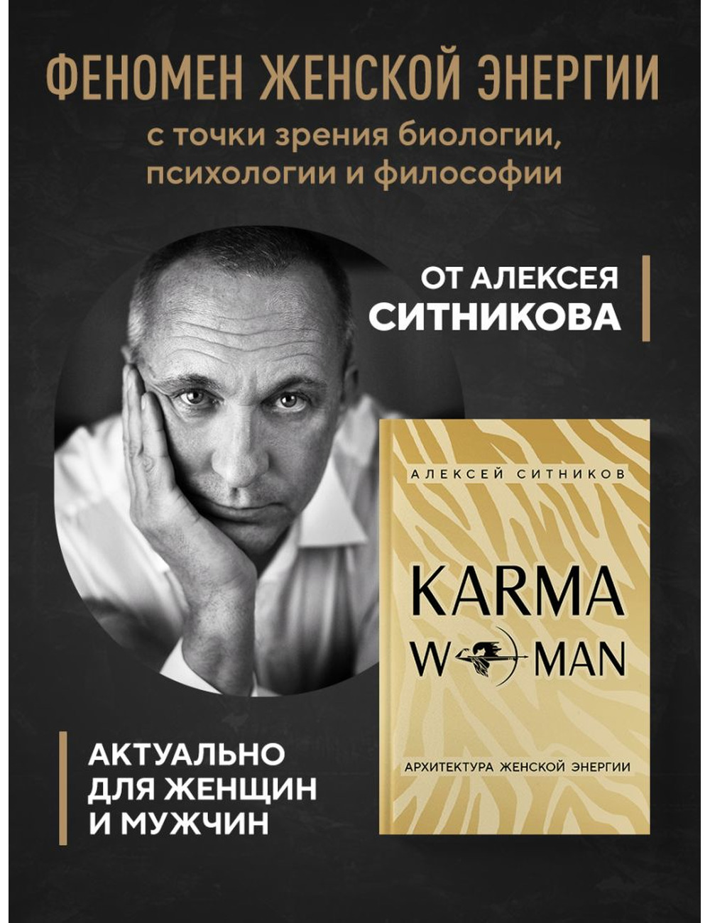 В книге «KARMAWOMAN» профессор Алексей Ситников раскрывает то, что обычно рассказывает только на закрытых лекциях: как работает эта энергия, почему она стала ключевым фактором 21 века и как ее развить.