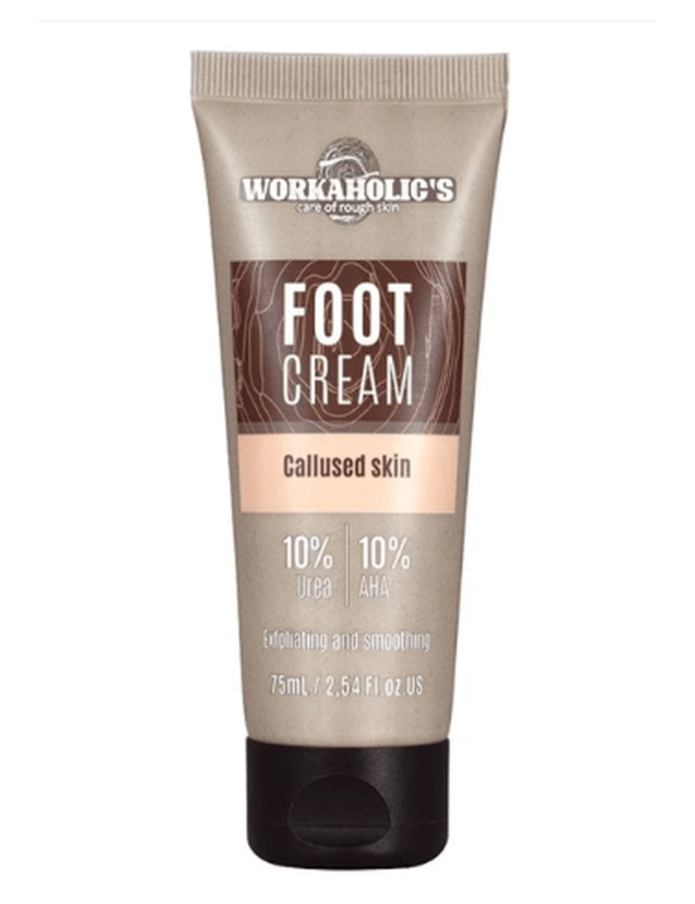 Упаковка отшелушивающего и разглаживающего крема для ног Workaholic на 30% изготовлена из переработанного пластика.