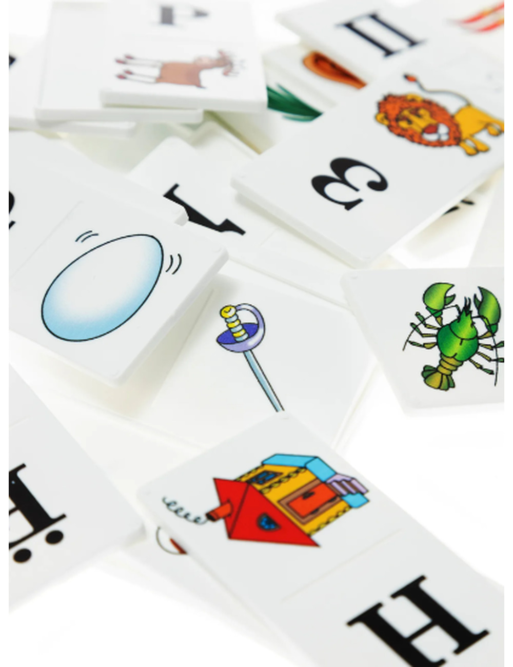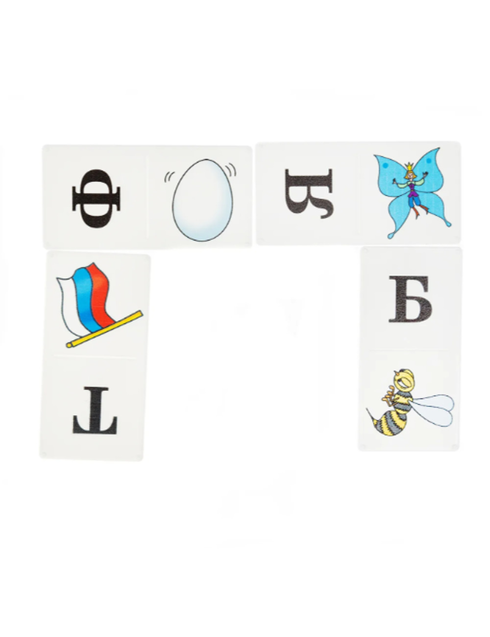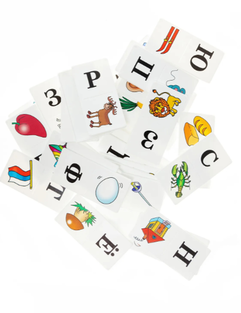 В отличие от обычного домино, умное домино состоит из 36 карточек, каждая из них разделена на 2 части. На одной половинке написана буква алфавита, а на другой изображена картинка. Каждая картинка соответствует определенным словам.