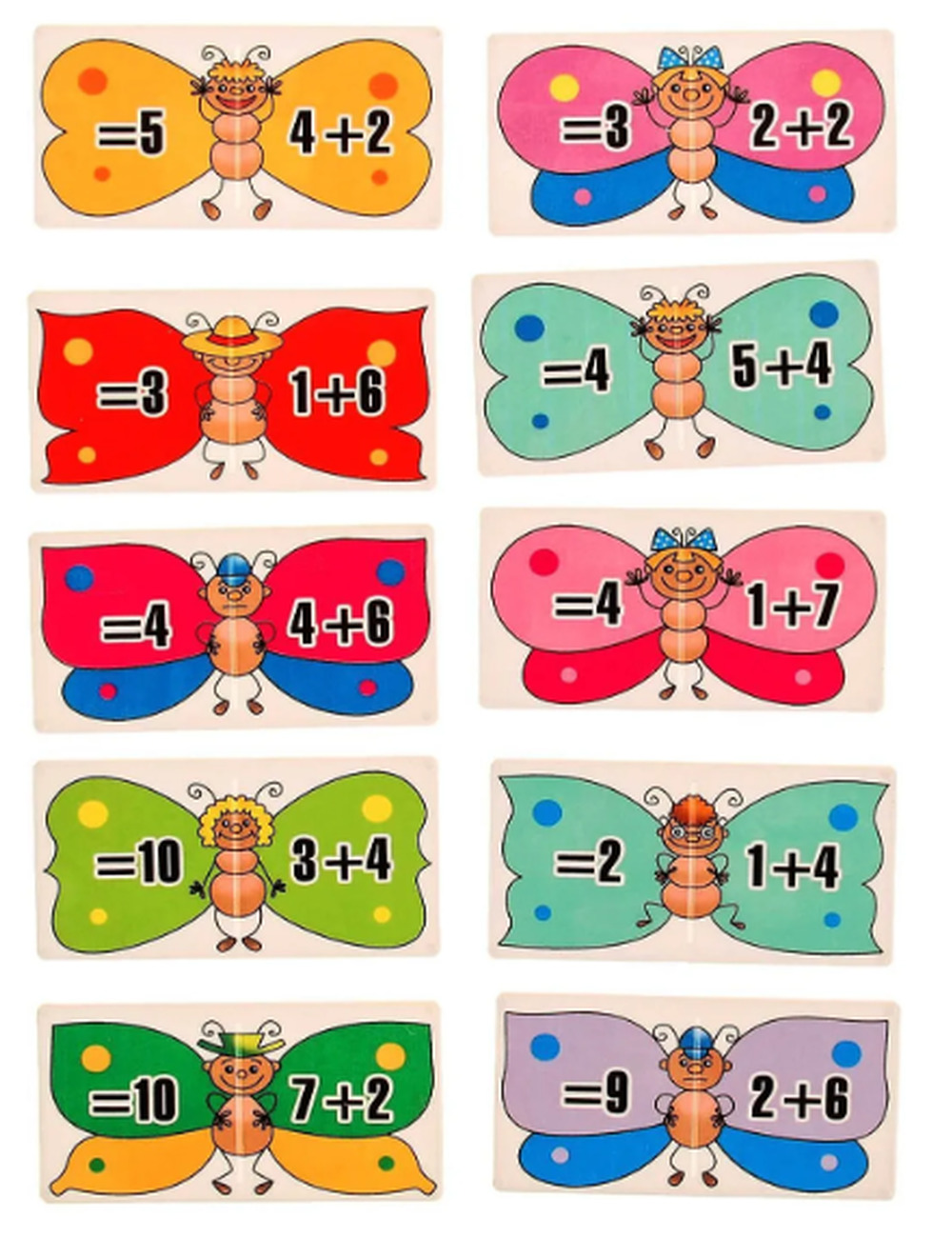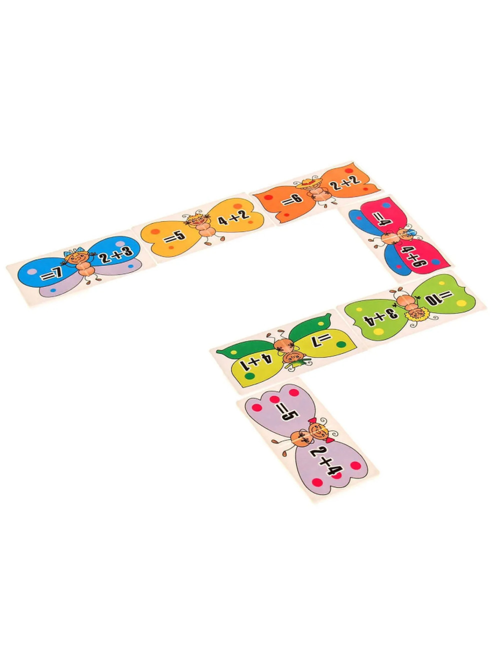 Простые примеры на сложение до десяти помогут быстрому освоению этого арифметического действия, научат ребенка внимательности и наблюдательности. Умное домино «Сложение» состоит из 36 пластмассовых карточек размером 8 на 4 сантиметра, каждая из которых разделена пополам. На правой половинке указан пример на сложение, на левой сумма для примера на другой карточке.