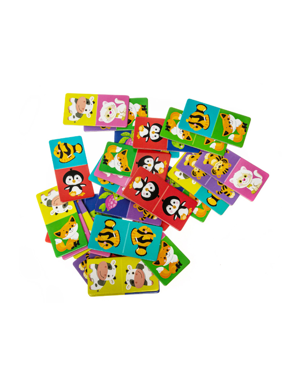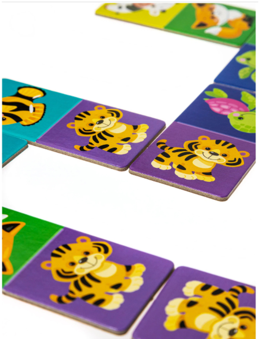 Играйте в увлекательное домино с картинками для детей «Животные» Baby Toys и знакомьте малыша с домашним скотом, дикими зверями и питомцами!