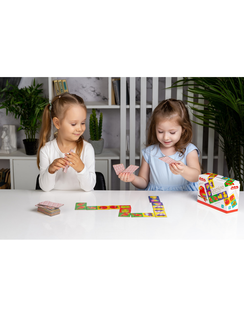 Детское домино с картинками из серии игр для самых маленьких Baby Toys развивает логическое мышление, внимательность, образное мышление и усидчивость.