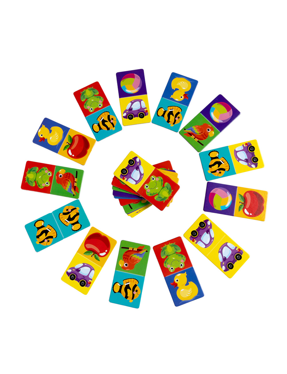 Детское домино Baby Toys – это новая интерпретация любимой с детства игры с развивающим эффектом. Вместо чёрных точек на фишках – яркие картинки на различные темы, которые познакомят вашего ребёнка с объектами окружающего мира.