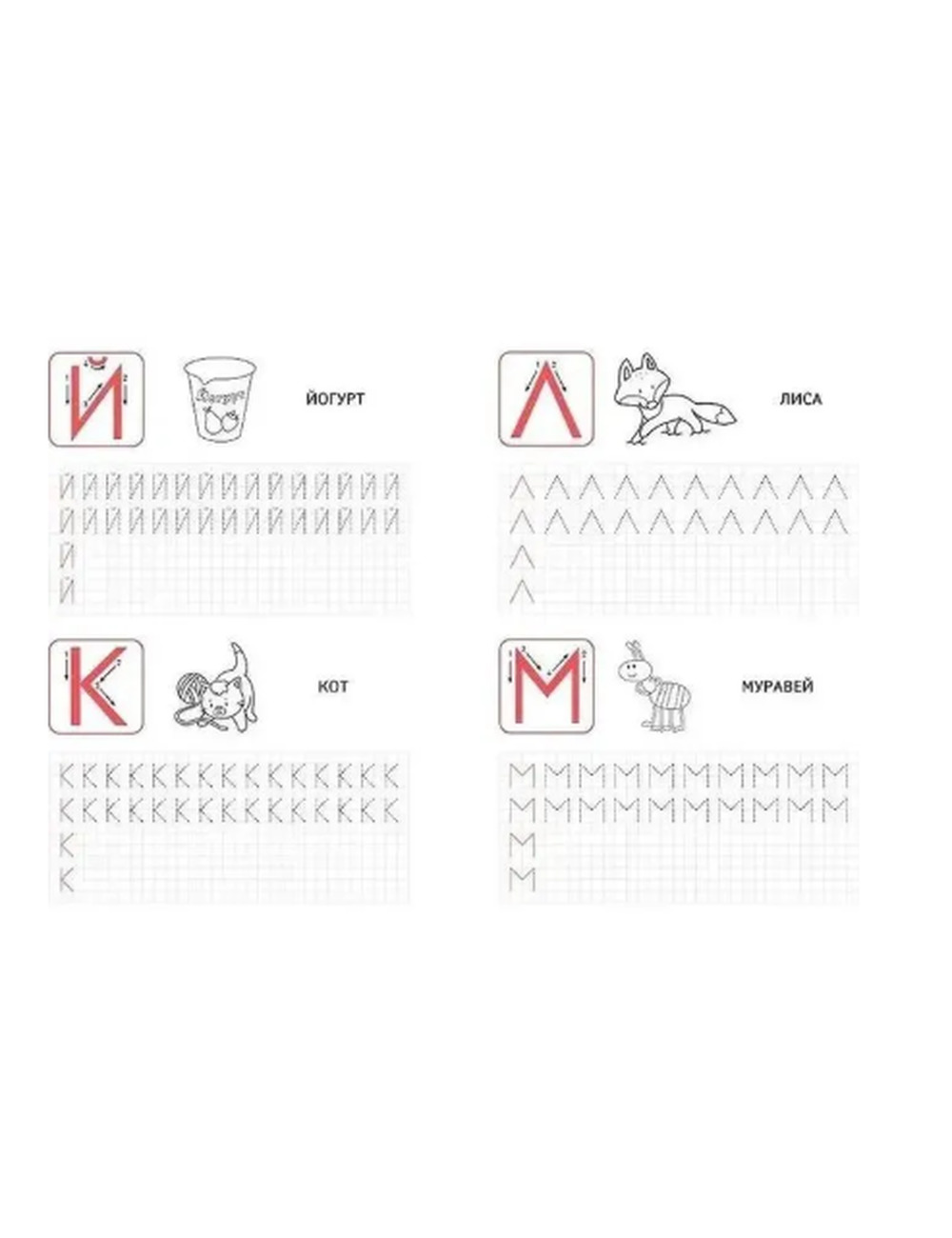 Пропись поможет ребёнку познакомиться с печатными буквами русского алфавита и научиться красиво и правильно их писать. Цветные образцы и направляющие стрелочки облегчат обучение письму, а иллюстрации рядом с каждой буквой научат малыша сопоставлять букву со звуком, который она обозначает.