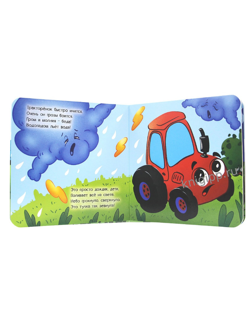 Серия «Маленький трактор» – это картонные мини-книжки, в которых главный герой – тракторенок – учится дружить, помогать в поле, преодолевать страхи и засыпать – легко и вовремя.