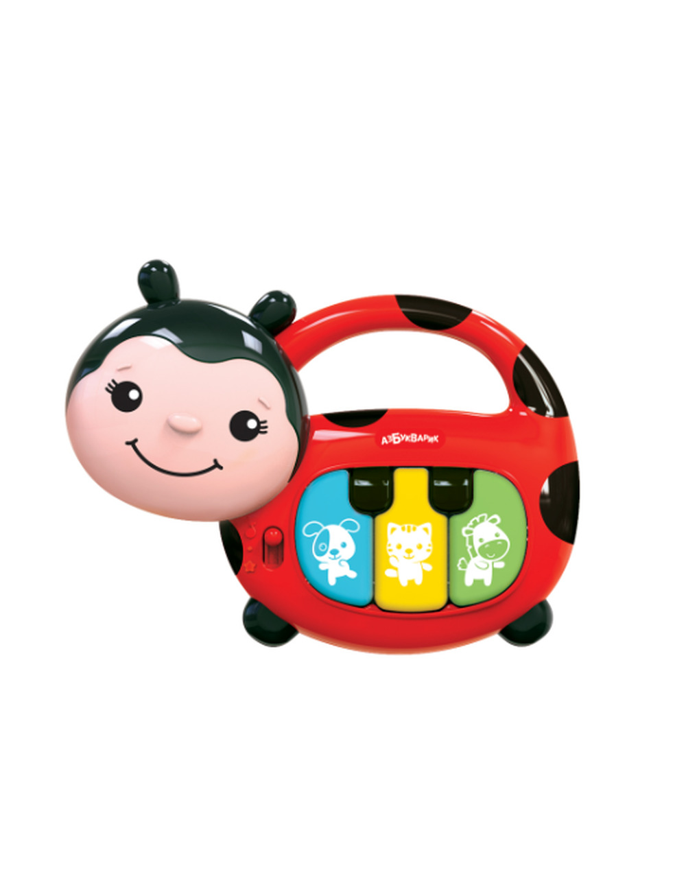 Миниатюрное пианино в виде забавной божьей коровки разработано специально для малышей. Игрушка работает в двух режимах. В режиме «Песенки и мелодии» ребенок при нажатии на клавиши послушает песенки о зверятах, любимые потешки и веселые мелодии.