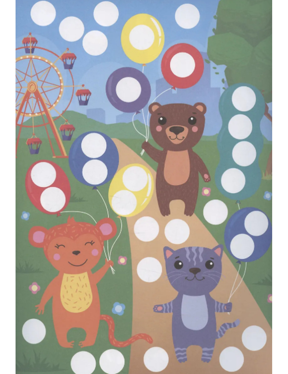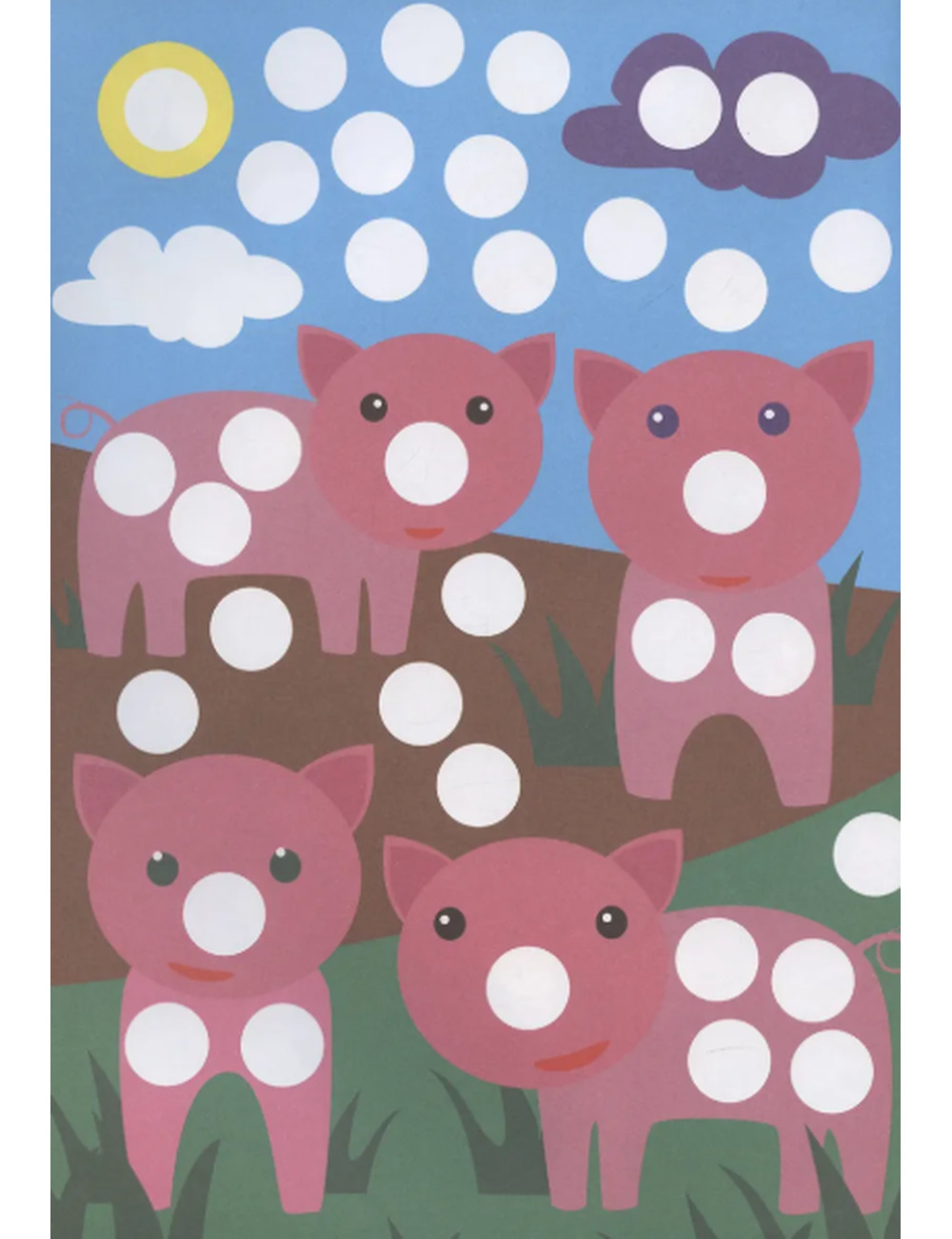 Раскраска с цветными иллюстрациями создана специально для больших точечных маркеров, но также подойдёт для рисования пальчиками, карандашами и фломастерами! На каждой странице есть белые кружочки, которые необходимо аккуратно закрасить соответствующим цветом, благодаря чему ребёнок активно тренирует мелкую моторику, логику, аккуратность и учится запоминать цвета.